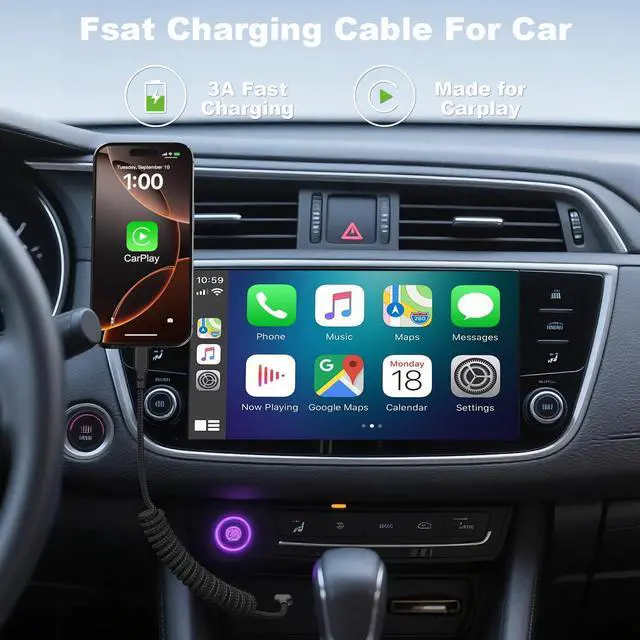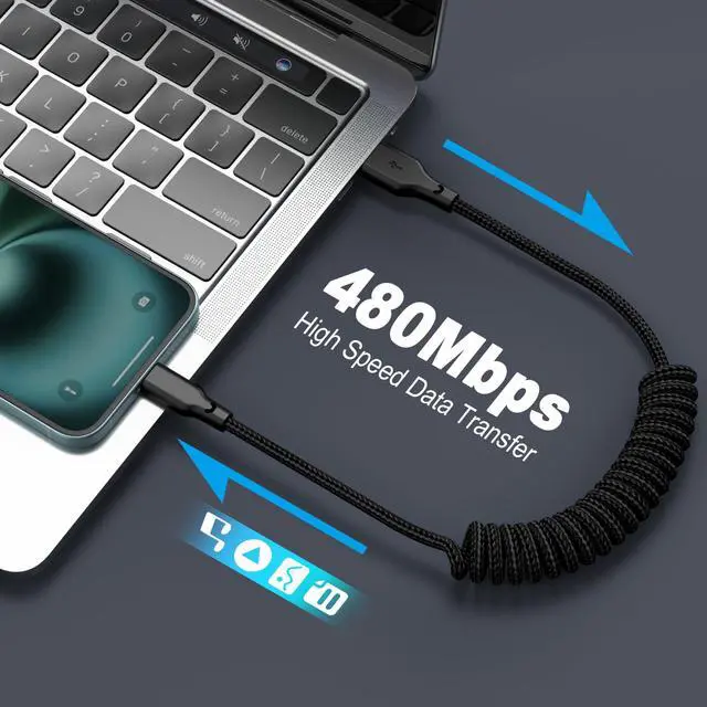 Durable Braid Carplay Cable & Tangle-ResistantBuilt with flexible, high-quality PU material and reinforced connectors, this coiled usb c cable resists knots, twists, and wear