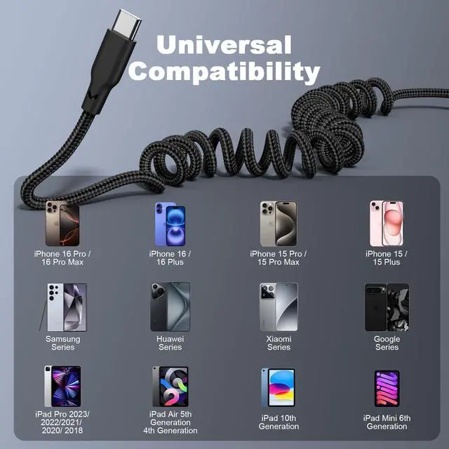 Universal Compatibility iPhone 17/16/15 Series (Pro/Max/Plus) , Galaxy S23/S10 Series , iPad Air/Mini & Most USB-C Devices, Supports Android Auto & Apple CarPlay