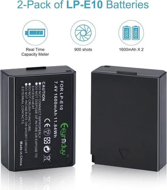 Eeyrnduy LP-E10 Li-ion Battery for Canon EOS Rebel T3, T5, T6, T7, Kiss X50, Kiss X70, T100, EOS 1100D, EOS 1200D, EOS 1300D, EOS 1500D, EOS 2000D, EOS 3000D EOS 4000D Digital Cameras.NOTE: THIS BATTERY NOT WORK WITH T3i, T5i, T6i, T7i.