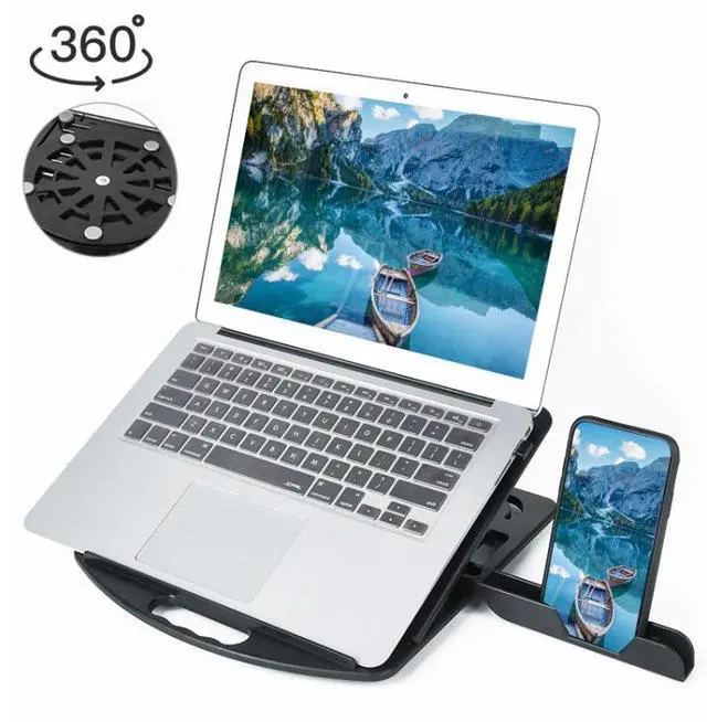 General-purpose Increased Heat Dissipation For Laptops Holder, Style: with Mobile Phone Holder with Rotation (Black)