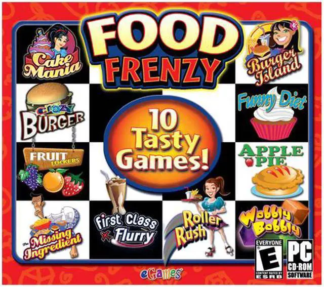 | Features | Includes 10 tasty games the entire family will enjoy! From a 50's style drive-in, to a beach burger shack, Food Frenzy has it all! Prepare your ingredients, follow recipes, and add your own flavor as you cook your way to the top of these culinary games! Tremendous value for the consumer! Includes many top selling games! Cake Mania, Crazy Burger, Burger Island, Funny Diet, Fruit Lockers, Apple Pie, Missing Ingredient, First Class Flurry, Roller Rush, and Wobbly Bobbly. |