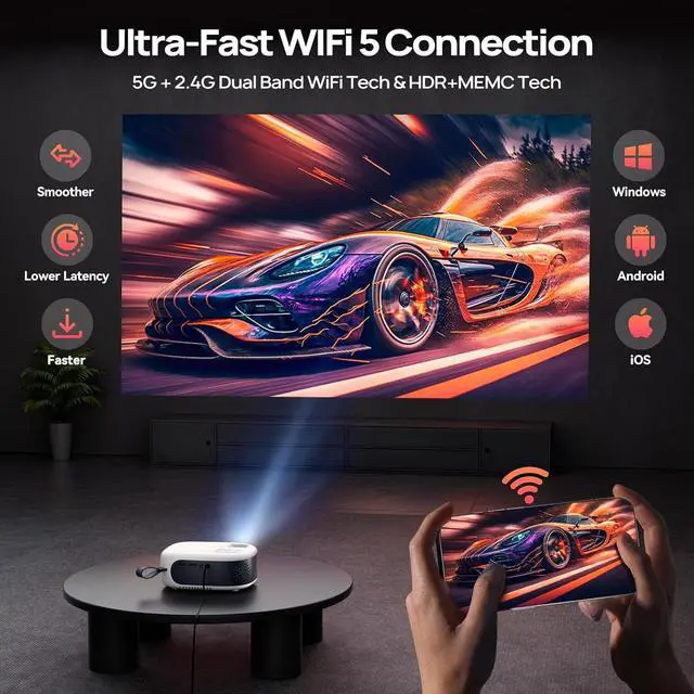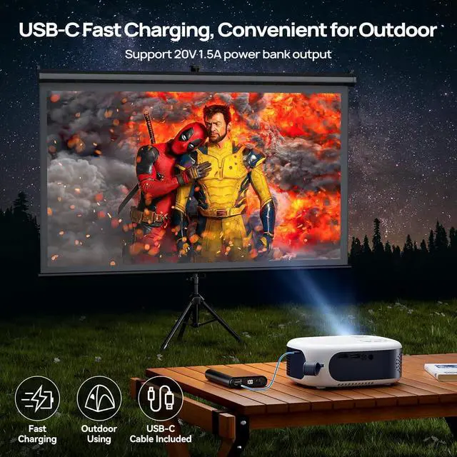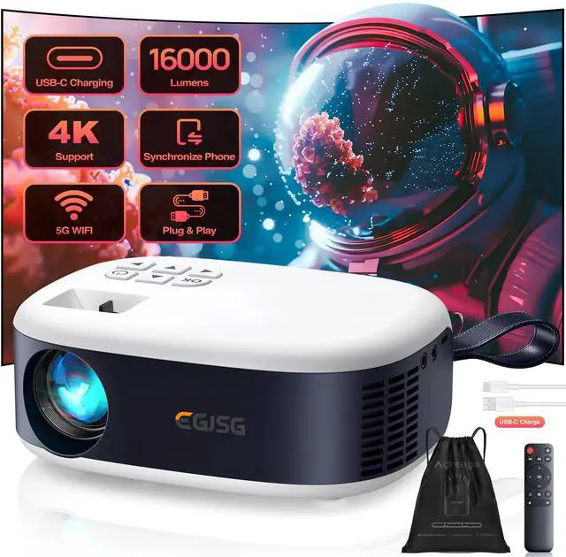 Experience stunning HD clarity with the EGJSG 1080P Mini Projector. Enjoy seamless 5G WiFi and Bluetooth connectivity for buffer-free streaming and immersive wireless audio. Featuring 2-second instant electric focus and versatile USB-C fast charging, this portable projector is your go-to choice for both indoor entertainment and outdoor adventures. Easily sync your smartphone via WiFi or wired connection, and take the complete cinema kitincluding a convenient carry bagto your next backyard gathering, camping trip, or holiday celebration.