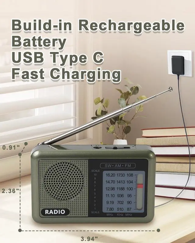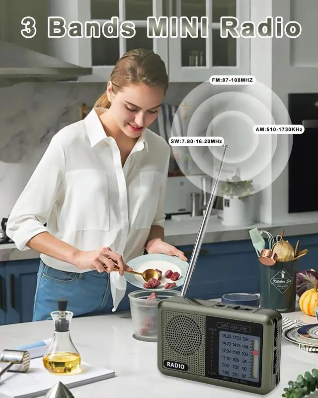 SIGNAL STABILITY - Easy to catch clear signal, FM: 87-108 MHz, AM:510-1730 kHz, SW: 7.8-16.20 MHz, our portable radio with 360° adjustable antenna, and built in advanced chip, you can get the local stations easily.