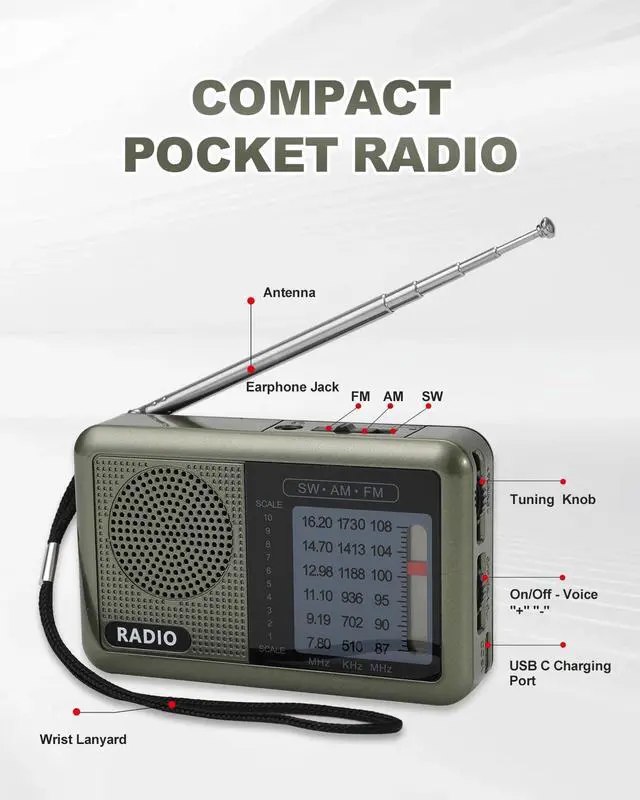 PORTABLE DESIGN - With wrist lanyard, the transistor radio is pretty easy to carry around whether its put in pocket or carried with lanyard. Very suitable for a walk after dinner, take it for morning exercise, stroll or a break in park, together with a piece of brisk music or a great radio show.