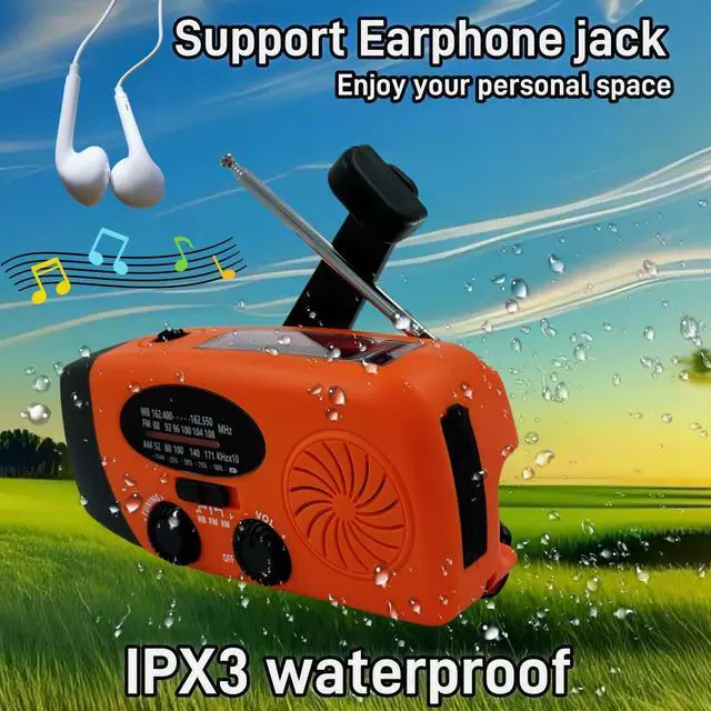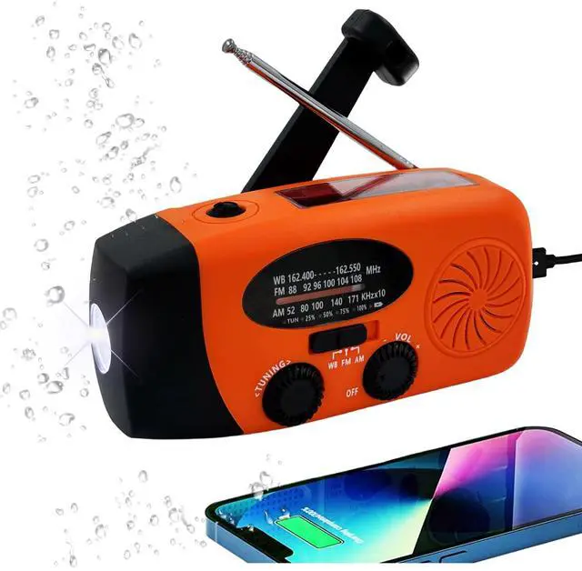 5000 mAh Power Bank Emergency Hand Crank Radio with LED Flashlight for Emergency, AM/FM NOAA Portable Weather Radio with Phone Charger, Earphone Jack ,USB Charged & Solar Power for Camping, Emergency.SOS for helping