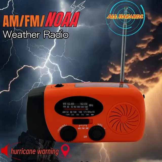 This weather radio receives the latest emergency weather forecasts & news broadcasts from 7 NOAA stations,(AM: 520-1710 kHz FM: 87-108 MHz