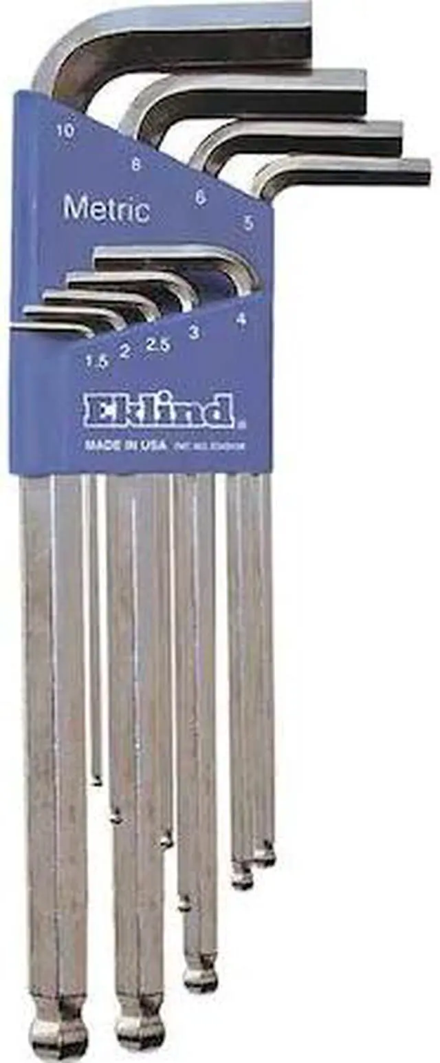 EKLIND's 13709 9 Piece Metric L-Shape Hex Key Set offers you a comprehensive range of hex keys for tackling various fasteners. These metric hex keys can be used across an extensive range of applications and product categories. This set comes in a plastic holder that helps to keep the tools neat and tidy. The set comprises L-shaped hex keys that can reach into tight spots and provide control when needed. Each long arm hex key is made of alloy steel, with nickel plated finish. Their alloy steel handles provide better grip, especially in wet conditions.
