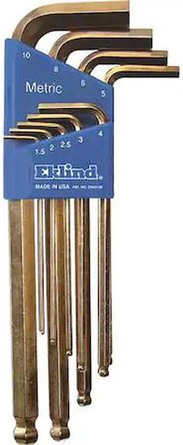 Eklind 13809 9 Piece Metric L-Shape Hex Key Set is the professional tool kit that contains all of the most frequently used hex keys. This set can be used in a variety of applications and comes with a handy plastic holder for storage. The set comprises nine metric hex keys ranging from 1.5 mm to 8 mm in size, so you will always have the right tool for the job. These long arm hex keys are made of alloy steel and come complete with a gold plated finish. Their alloy steel handles provide better grip, especially in wet conditions.