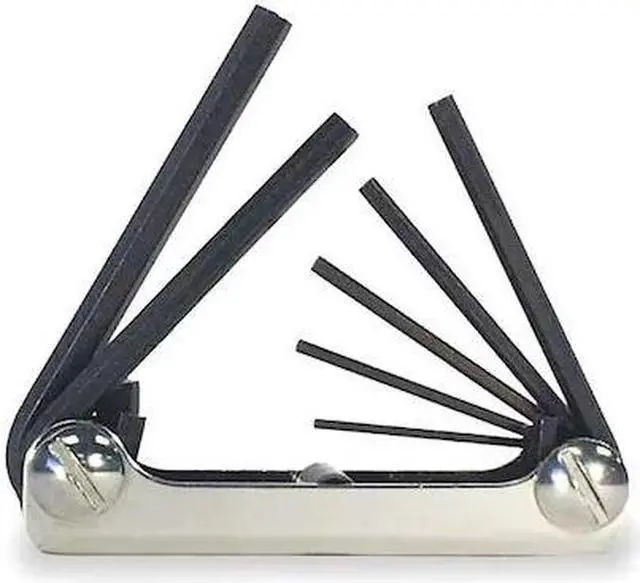 The EKLIND 21172 7 Piece Metric Fold-Up Hex Key Set is the perfect tool for when you need to tighten or loosen fasteners in tight spaces. It has a compact size that can fit into small areas, while still providing sufficient torque. This fold-up hex key set comes with 7 pieces in metric sizes from 2 mm to 8 mm. The alloy steel blades are black oxide finished and the alloy steel handles are foldable for ease of storage. They have an overall length of 4 3/32" and an arm length ranging between 2" and 4.10".