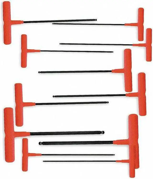 EKLIND's 60811 11 Piece SAE T-Shape Hex Key Set is the comprehensive hex key set you need to complete your project. This standard hex key set can be used across a wide range of applications and product categories. It comes with 11 pieces that are sized from 5/64" to 3/8". The hex keys have a black oxide finish, providing extra durability and corrosion resistance. They also feature alloy steel blades that are resistant to bending and breakage. Each long arm hex key has a plastic handle for added comfort, especially in wet conditions.