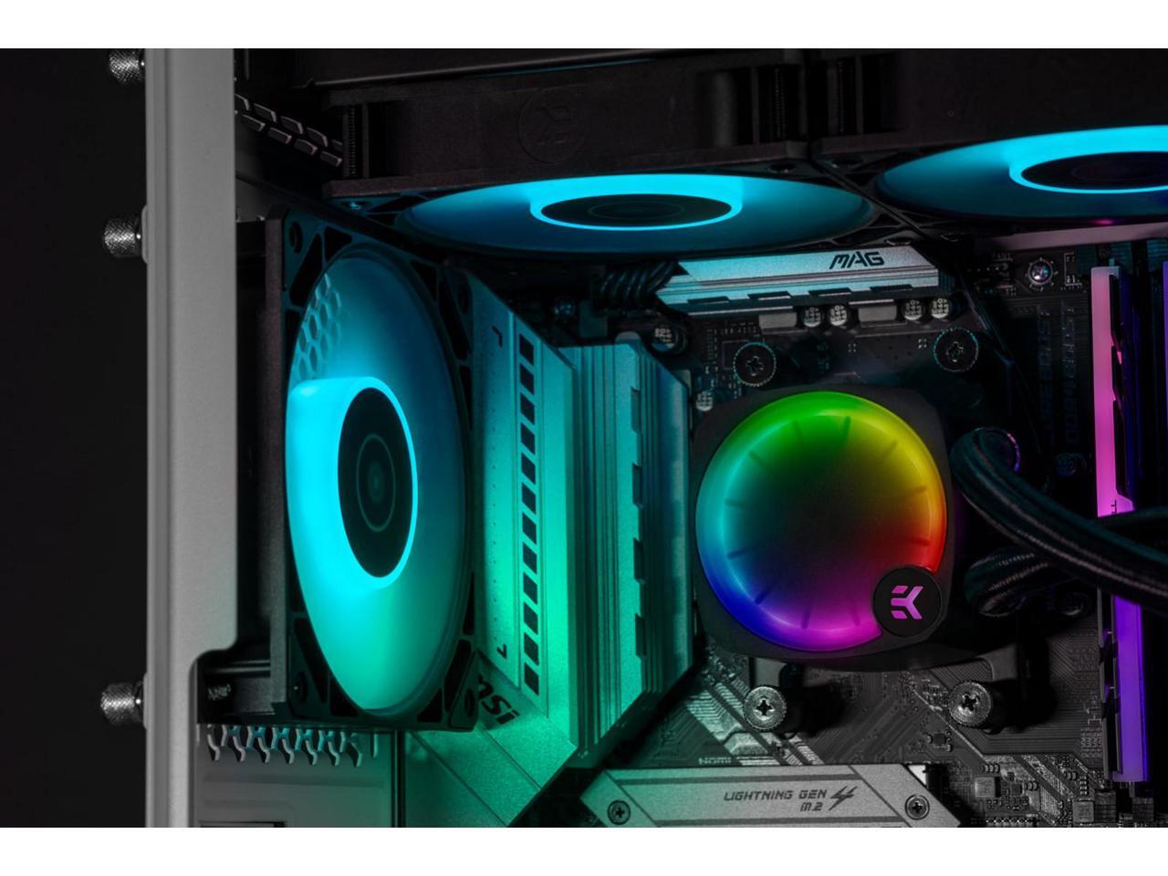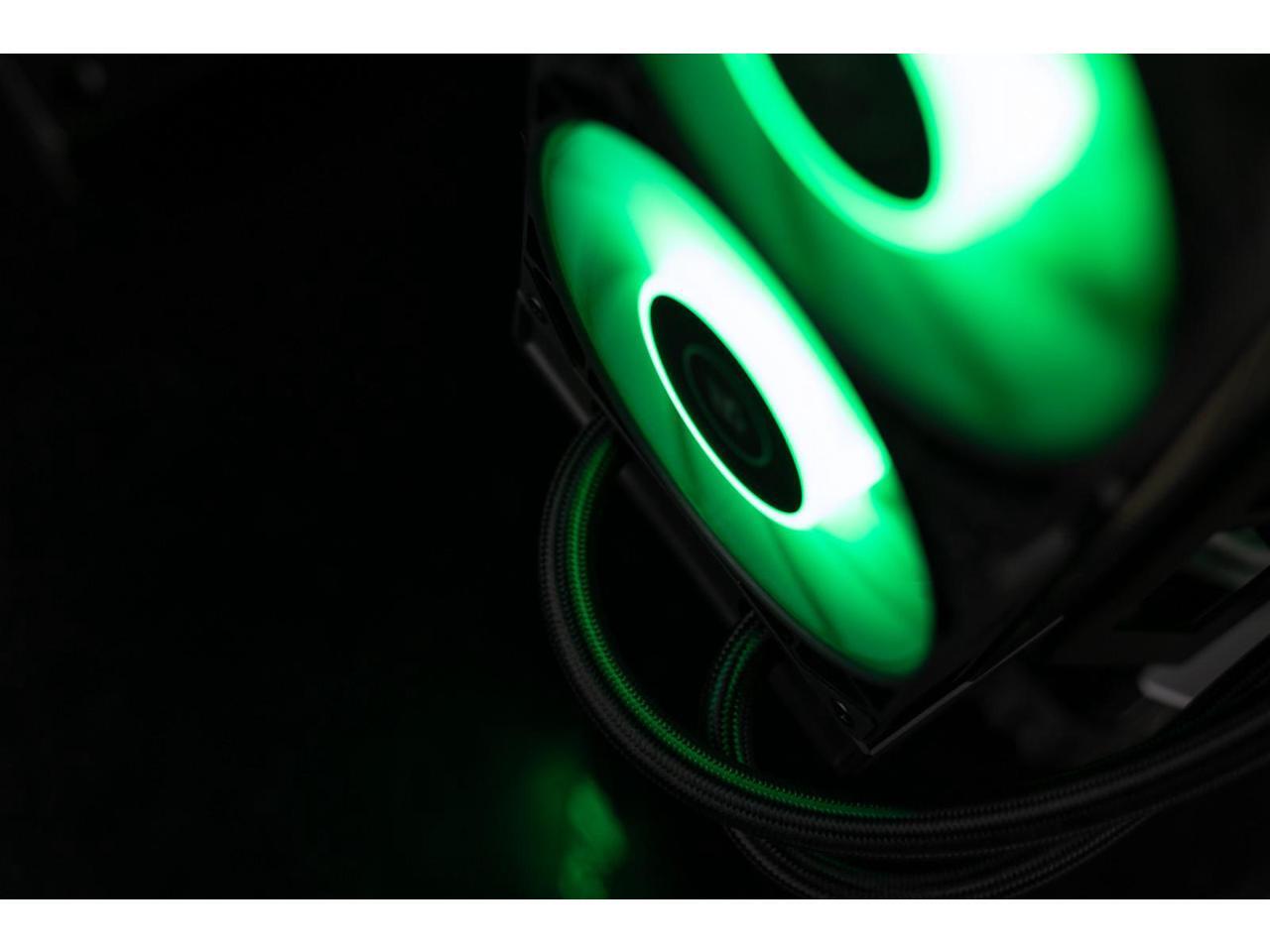 - ADDRESSABLE RGB - Customize your all-in-one system to match your setup with its fully addressable RGB lighting effects. This closed-loop liquid CPU cooler offers a plug-and-play solution with a fan-like D-RGB lighting effect around the pump top.