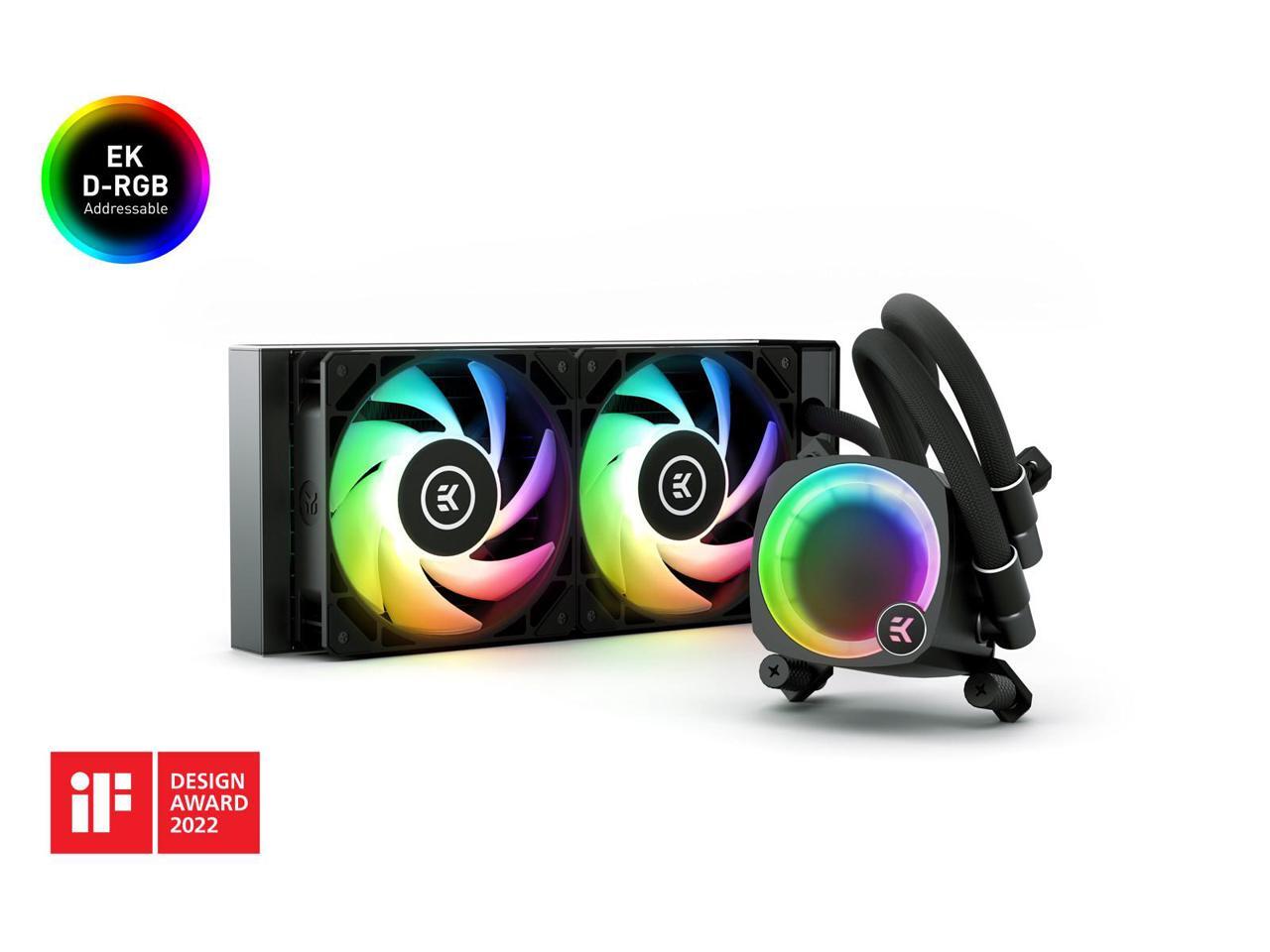 EK Nucleus AIO CR240 Lux D-RGB 240mm AIO Liquid CPU Cooler with EK FPT 120mm Fans - Compatible with latest Intel and AMD CPU sockets - LGA 1700 and AM5