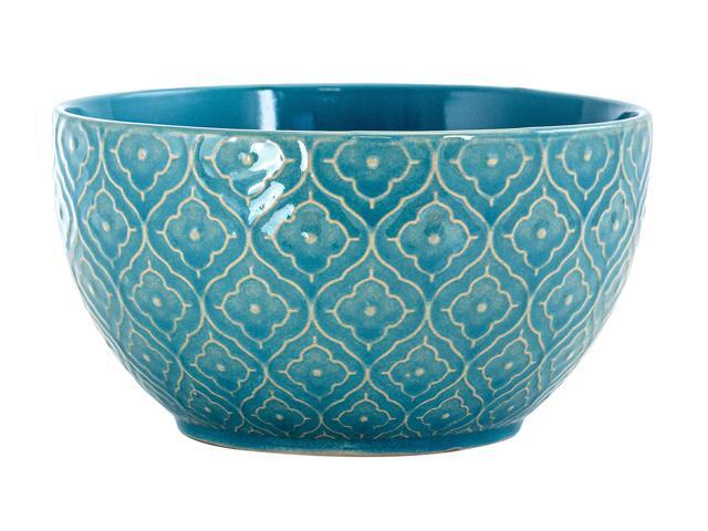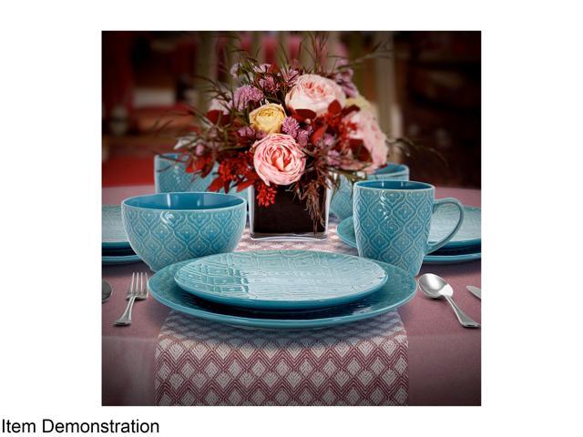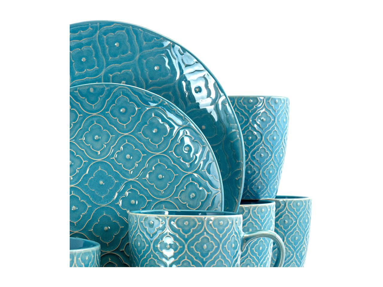 Elama Aqua Lily 16 Piece Luxurious Stoneware Dinnerware with Complete Setting for 4