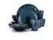 Freshen up your table setting with the textured Elama Deep Sea Mozaic 16 Piece Round Stoneware Dinnerware Set in Sea Blue. With a calming tone of Sea Blue and textured mandala style designed plates, this set is ready to make a statement at your next gathering. Stoneware construction of each dish is ideal for special occasions and durable for every day use. Each piece is microwave safe for quick reheating and dishwasher safe for easy cleaning.