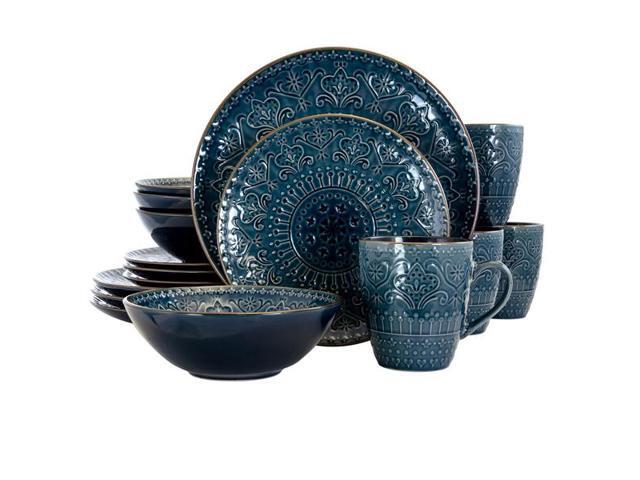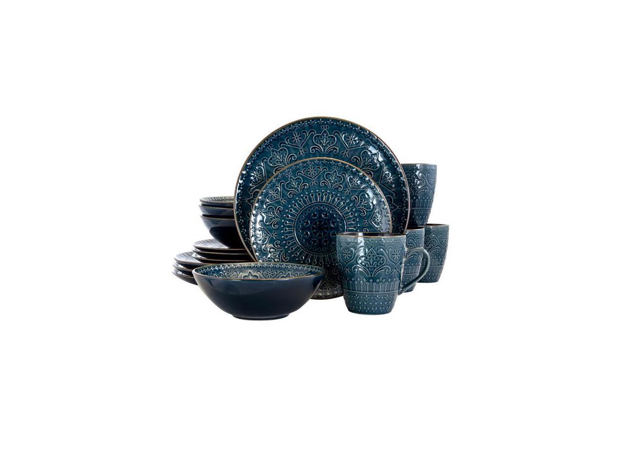 Elama Deep Sea Mozaic 16 Piece Luxurious Stoneware Dinnerware with Complete Setting for 4