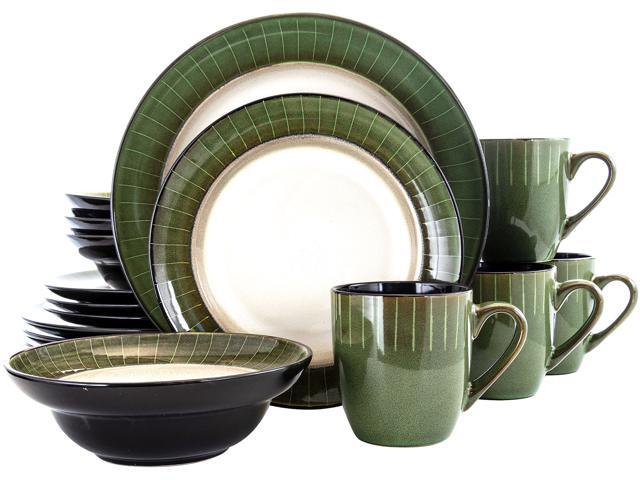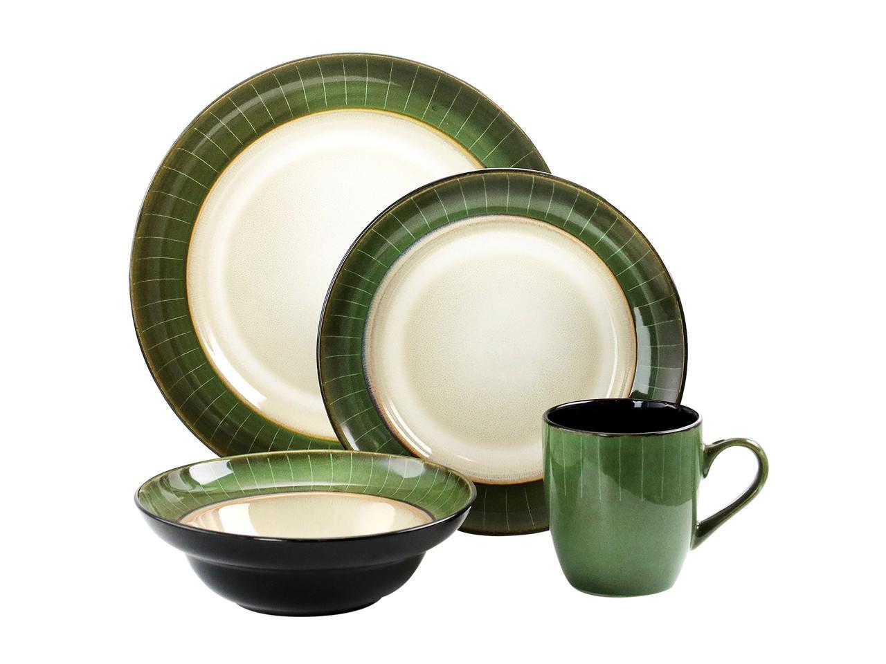 Elama Grand Jade 16 Piece Luxurious Stoneware Dinnerware with Complete Setting for 4, 16pc