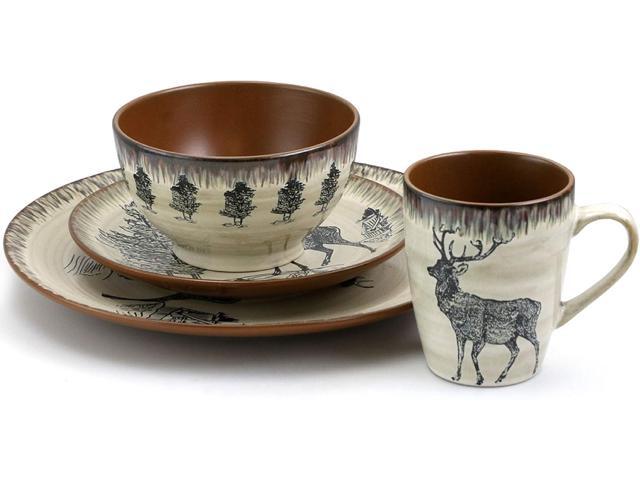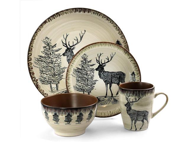 Elama Majestic Elk 16 Piece Round Stoneware Dinnerware Set in Taupe