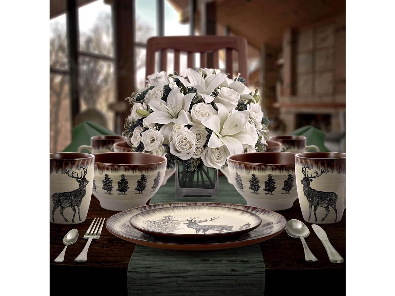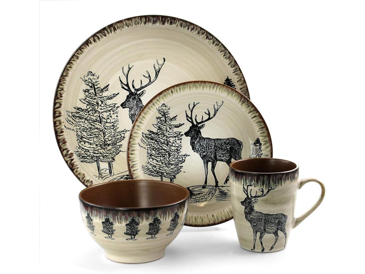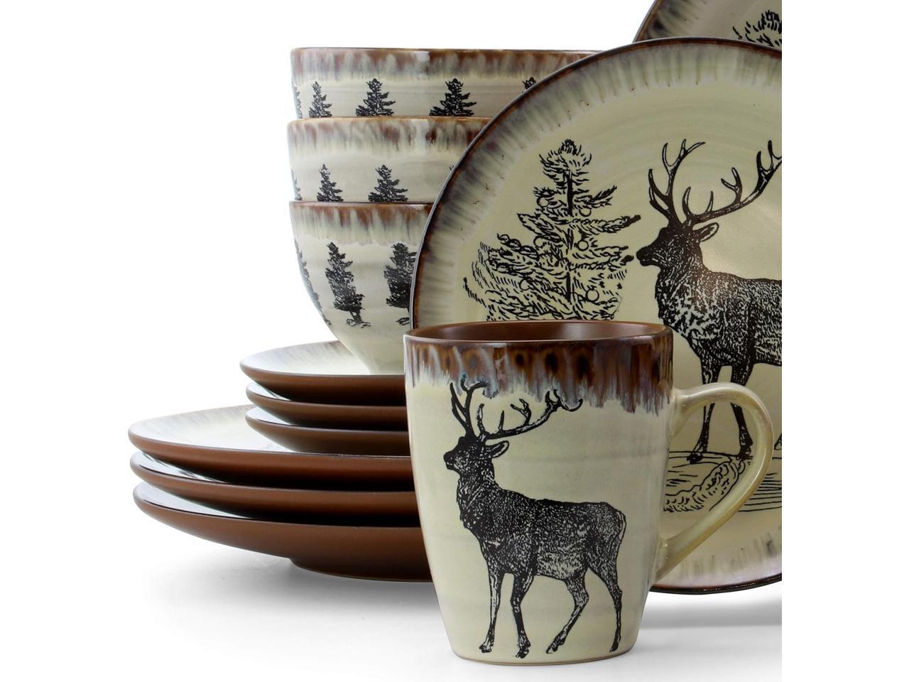 Add a beautiful accent to your kitchen with the Elama Majestic Elk 16-Piece Dinnerware Set