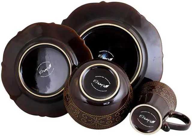 Features Elama's Salia 16 Piece Stoneware Dinnerware Set brings a truly stunning accent to your table with its unique pattern and texture. The high gloss finish of this luxurious set will tantalize your sense of touch while the bold colors will entice your sense of sight.