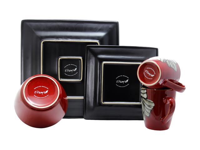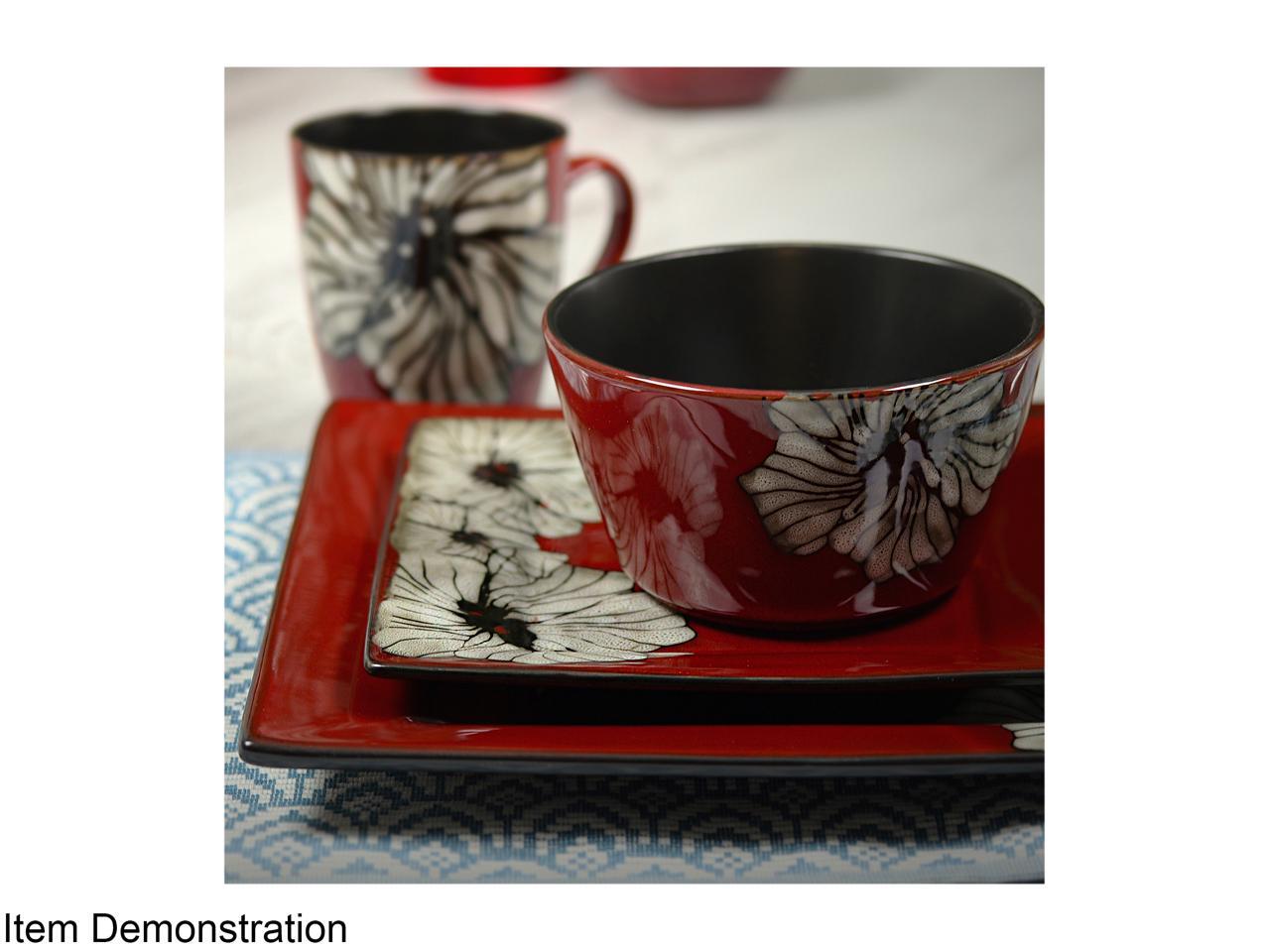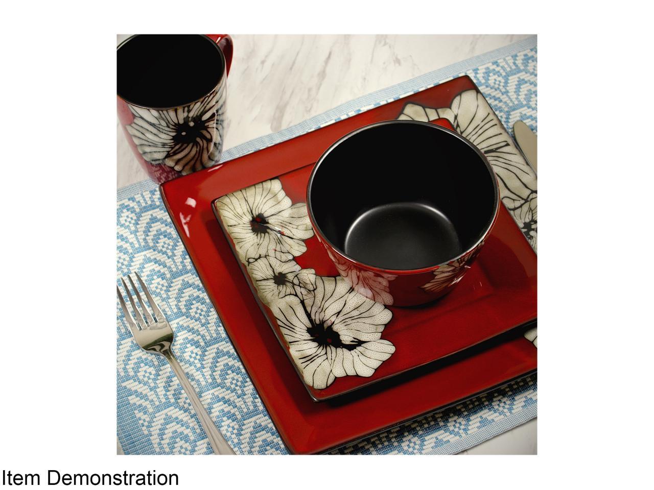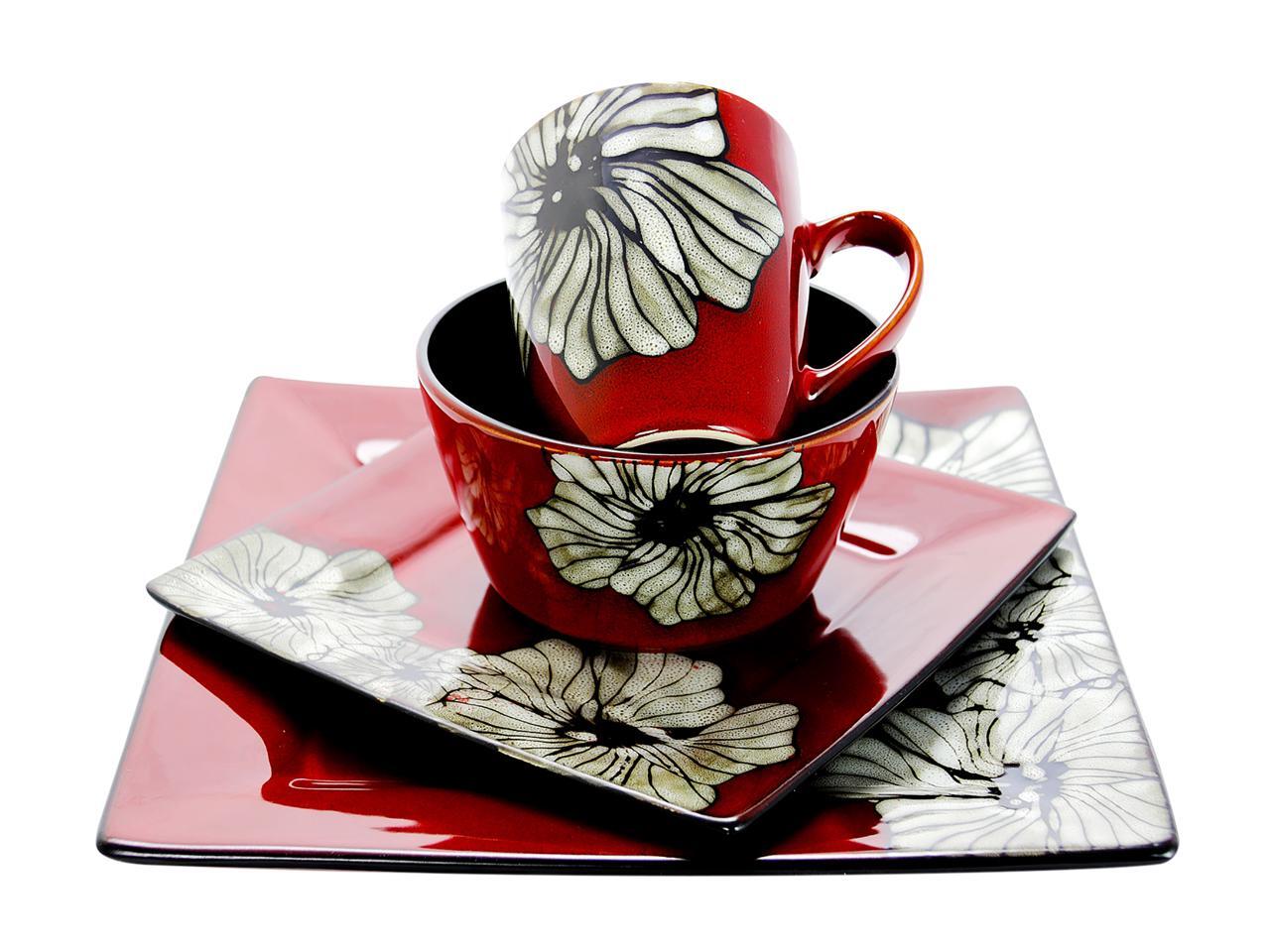Elama Winter Bloom 16 Piece Square Stoneware Dinnerware Set