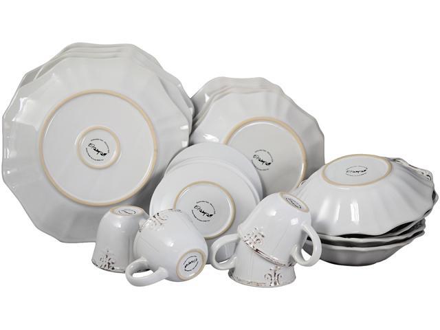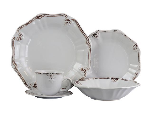 Elama Fleur De Lys 20 Piece Dinnerware Set, White