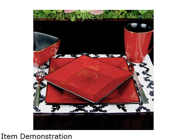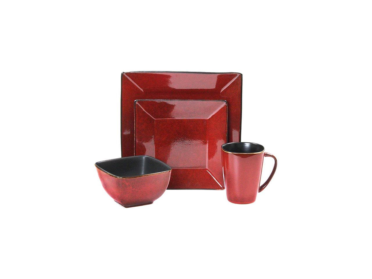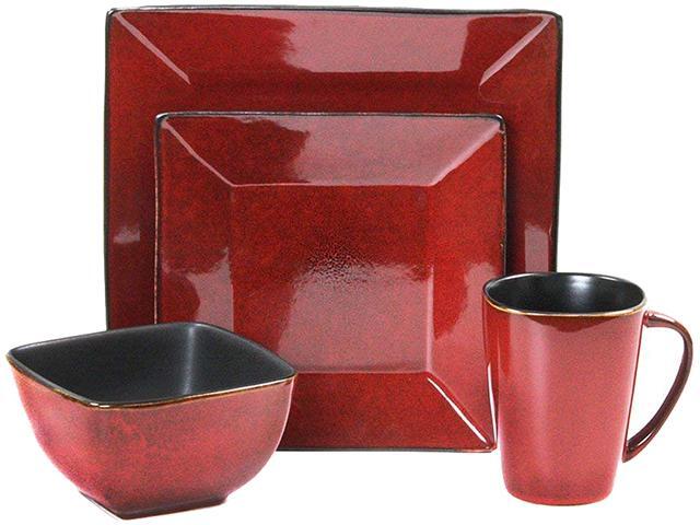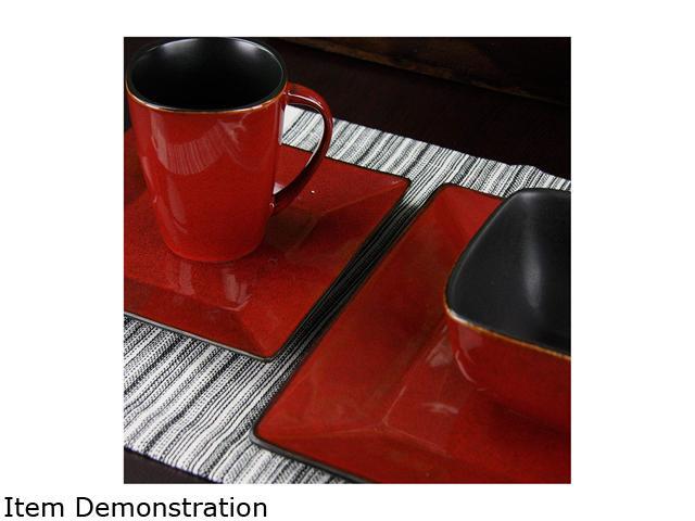 Elama Harland Loft 16 Piece Dinnerware Set, Red & Black