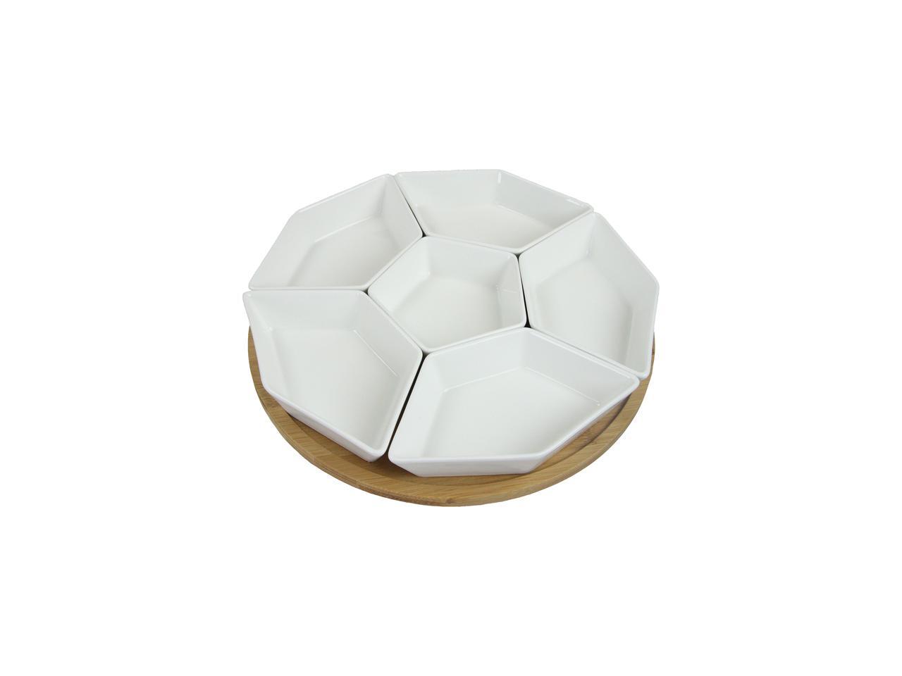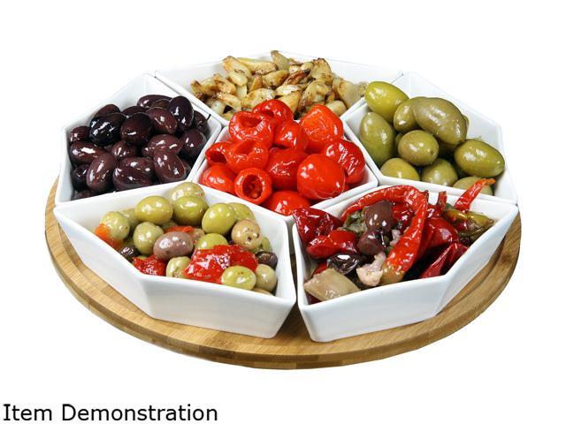 Elama Signature 12 Inch 7pc Condiment Server Set with a Bamboo Lazy Suzan Serving Tray