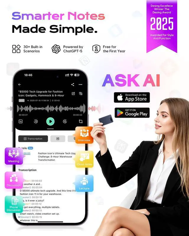 | Specifications | Brand: Elasound, Color: Black, Format_0: wav, Format_1: mp3_audio, Battery_weight: 6.5 grams, Battery_average_life: 45 hours, Battery_cell_composition: lithium_ion, Display_size: 0.47 inches, Skip_offer: false, Part_number: LA5180129, Unspsc_code: 52161535, Manufacturer: Elasound, Model_number: LA518, Num_batteries_type: d, Num_batteries_quantity: 1, Headphones_jack: No headphones jack, Item_dimensions: 0.12 L x 2 W x 3.4 H inches, Lithium_battery_packaging: batteries_contained_in_equipment, Lithium_battery_energy_content: 1.5 watt_hours, Number_of_items: 1, Batteries_included: true, Batteries_required: false, Compatible_devices: Smartphone, Hardware_interface: usb, Included_components: AI Voice Recorder, Item_package_weight: 0.15 kilograms, Warranty_description: 1 Year Manufacturer, Microphone_form_factor: Built-In, Item_depth_width_height_depth: 0.12 inches, Item_depth_width_height_width: 2 inches, Item_depth_width_height_height: 3.4 inches, Item_package_dimensions: 1.905 L x 10.2108 W x 14.4018 H centimeters, Memory_storage_capacity: 64 GB, Contains_battery_or_cell: battery, Product_site_launch_date: 2025-08-04T07:00:58.884Z, Microphone_operation_mode_0: Mono, Microphone_operation_mode_1: Stereo, Number_of_lithium_ion_cells: 1, Includes_rechargable_battery: true, Battery_installation_device_type: not_installed, Supplier_declared_dg_hz_regulation: not_applicable, Has_multiple_battery_powered_components: false, Supplier_declared_has_product_identifier_exemption: true |