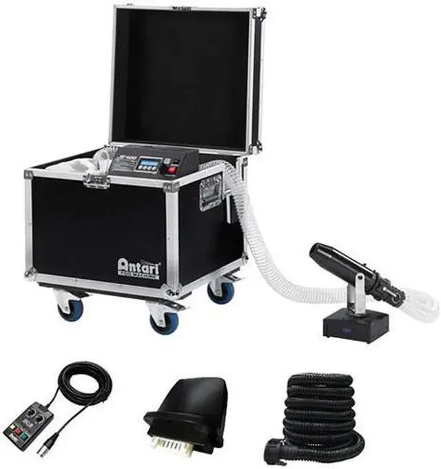 Meet Antaris latest snow machine: The S-500DXL. Its main body and 20-Liter fluid tank are placed inside a road case with wheels.