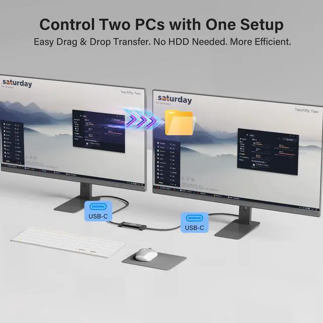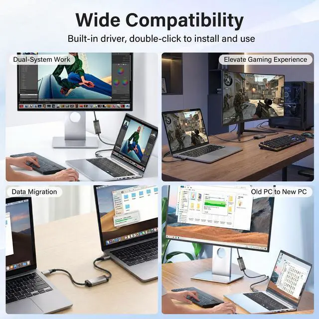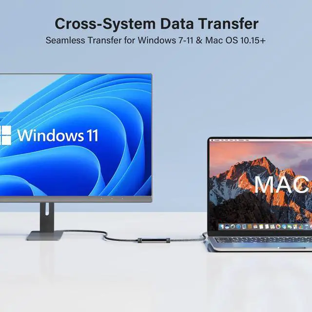 Built with an advanced smart chip that enables safe and stable data transmission between two computers, preventing short circuits and data loss. The intelligent control IC ensures reliable communication, automatic driver recognition, and smooth high-speed file transfer for both Windows and macOS systems.