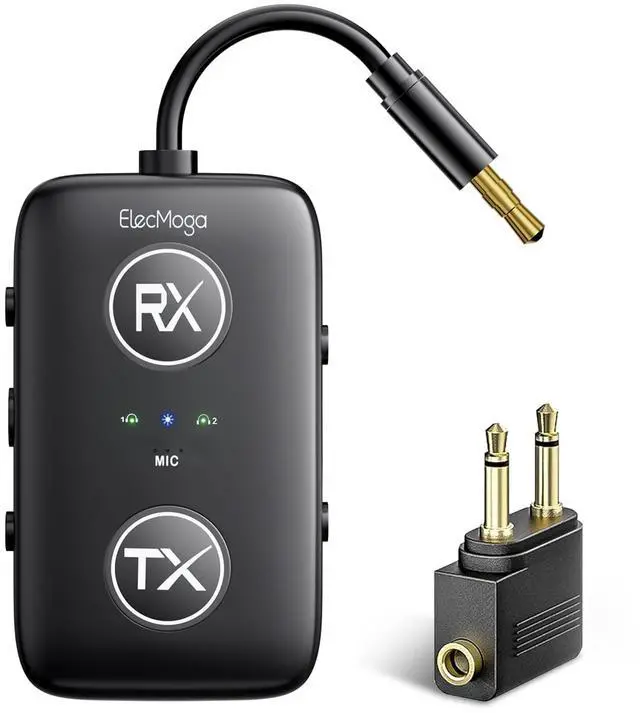 ElecMoga's airplane travel essentials - bluetooth transmitter receiver is an all-in-one airplane essentials for wireless audio devices.