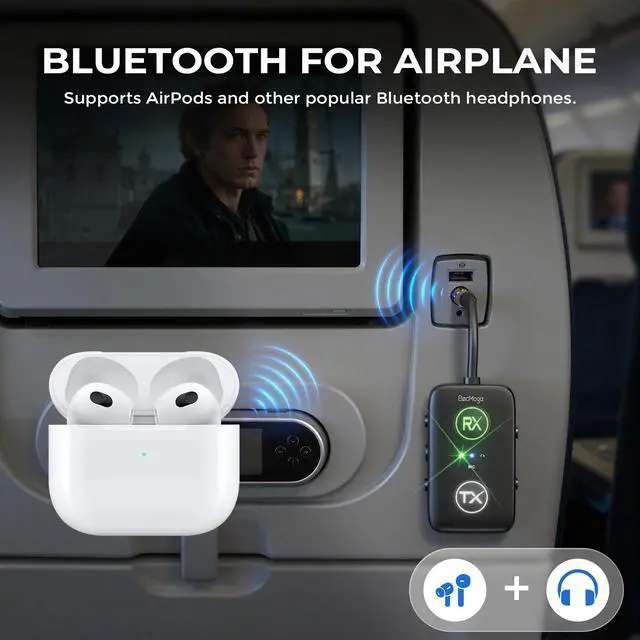 In addition,airplane bluetooth adapter for headphones offers broad compatibility with dual 3.5mm airplane headphone adapters for seamless connectivity with any airplane and devices that output audio via AUX. air fly pro wireless transmitter for plane low-latency synchronized transmission technology effectively reduces lags, disconnections, and audio/video desynchronization, making your entertainment experience smoother.