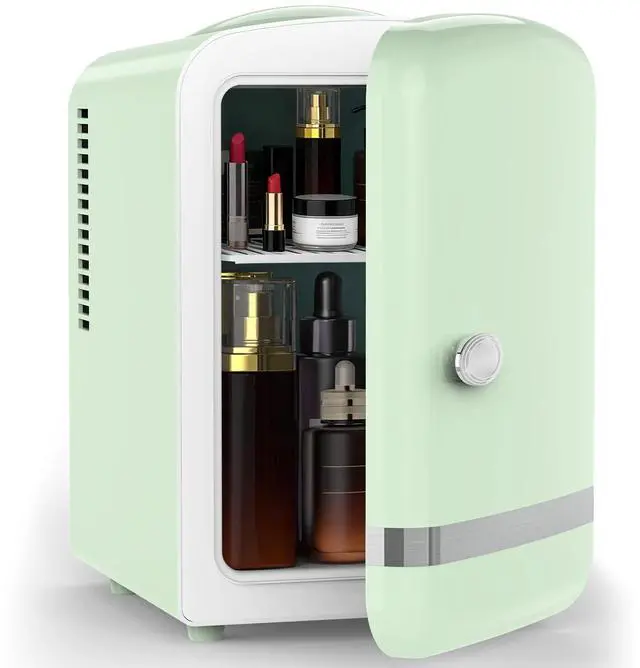 Mini Fridge for Bedroom, 4L/6 Cans Small Cosmetic Fridge for Skincare, Makeup, Medicine & Beverage, Portable Desk Fridge Cooler and Warmer for Kids, Car, Office, Dorm, Green