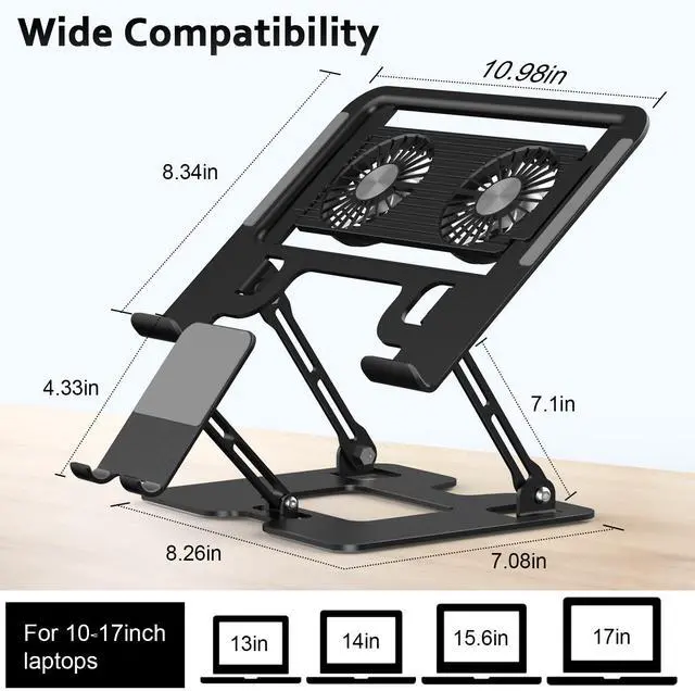 Laptop Stand with Fan,Laptop Cooling Stand with 2 Detachable Quiet Fans & Phone Holder, Adjustable Height & Angle,Laptop Cooling Pad for 10-18" Laptops, MacBook Pro,Gaming Laptops, Tablets