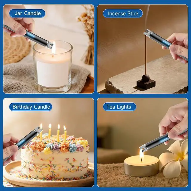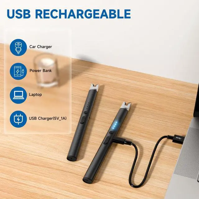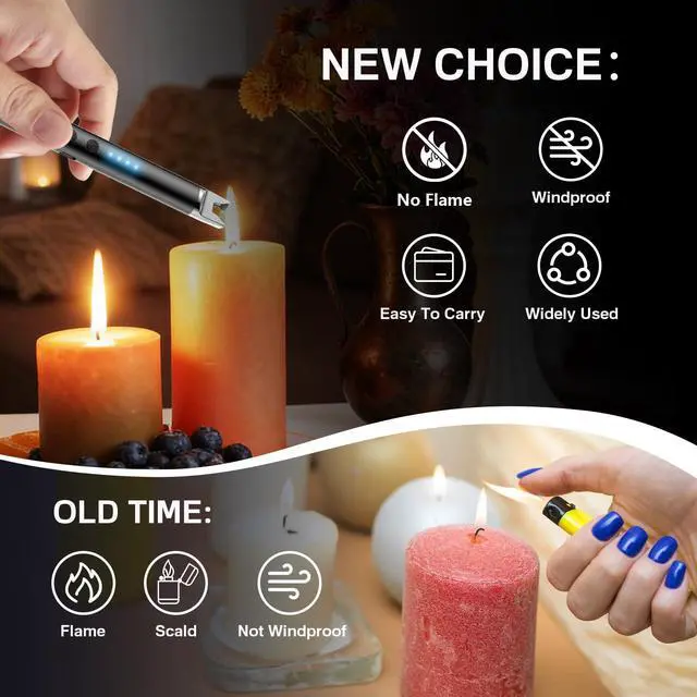 TOPKAY Electric Lighter Candle Lighter Windproof Flameless USB Rechargeable Plasma Arc Long Lighter for Grill Firework Kitchen Camping
