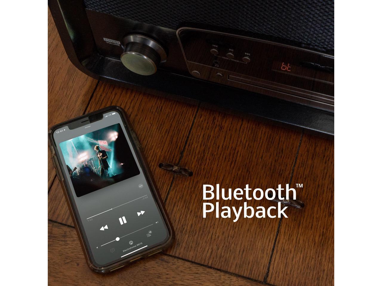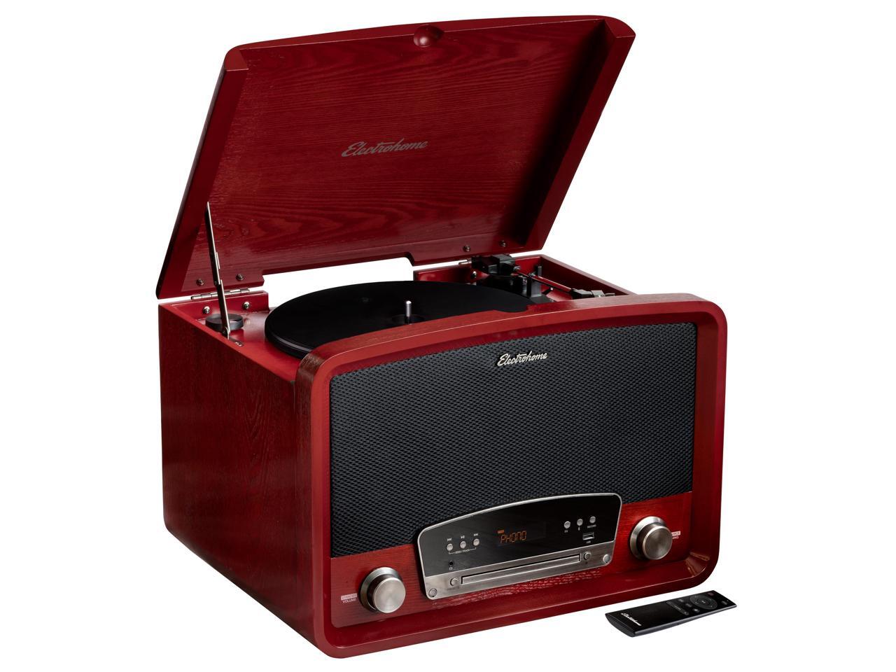 Electrohome Kingston 7-in-1 Vintage Vinyl Record Player Stereo System with 3-Speed Turntable, Bluetooth, AM/FM Radio, CD, Aux In, RCA/Headphone Out, Vinyl/CD to MP3 Recording & USB Playback (RR75C)