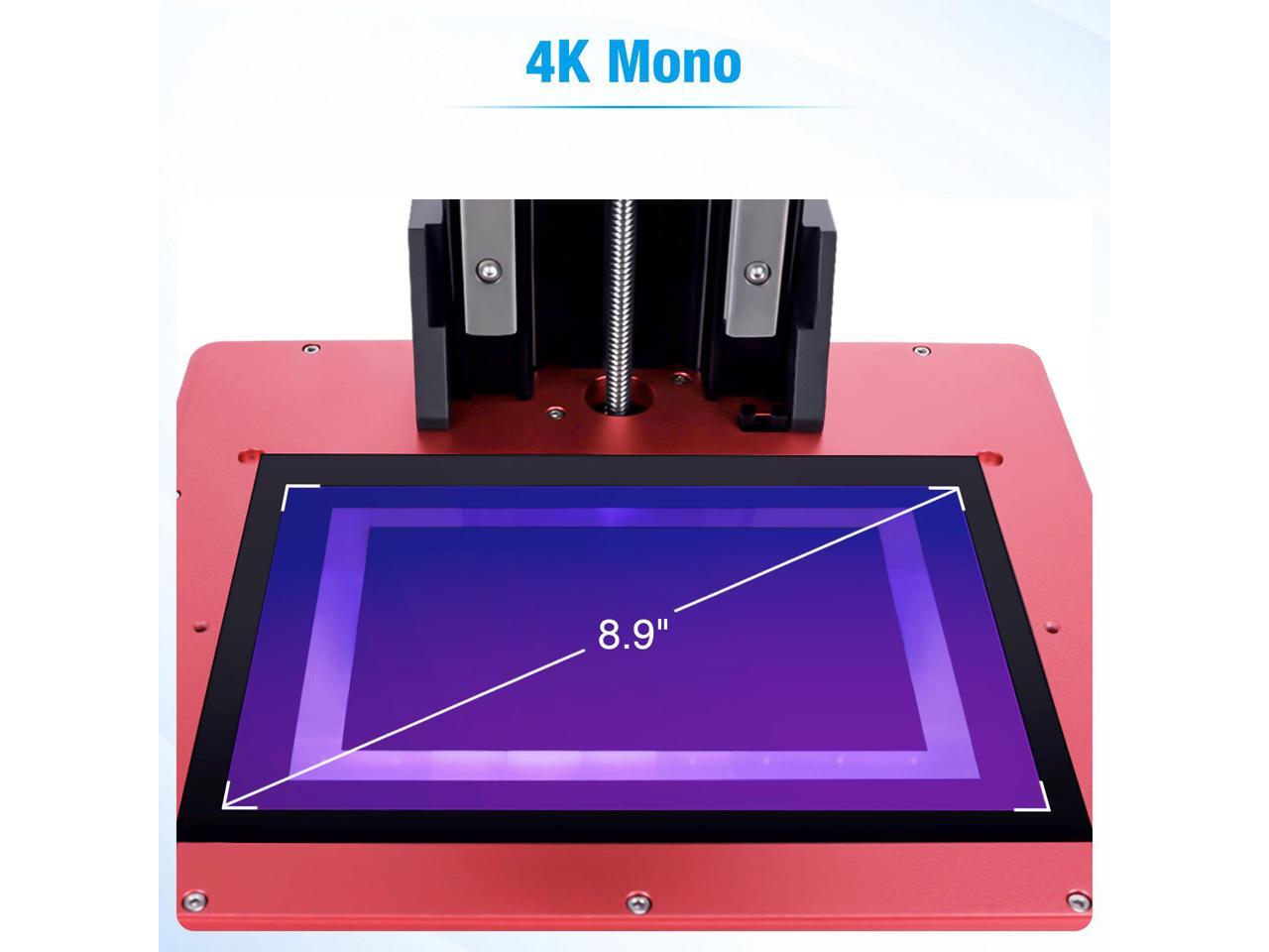 - 9.1inch True 4K Mono Screen: 4098 x 2560 pixels ultra high resolution, per layer exposure takes only 2 seconds, more details and less time. The lifespan of Mono LCD is more than 2000 hours, 4 times that of RGB screen