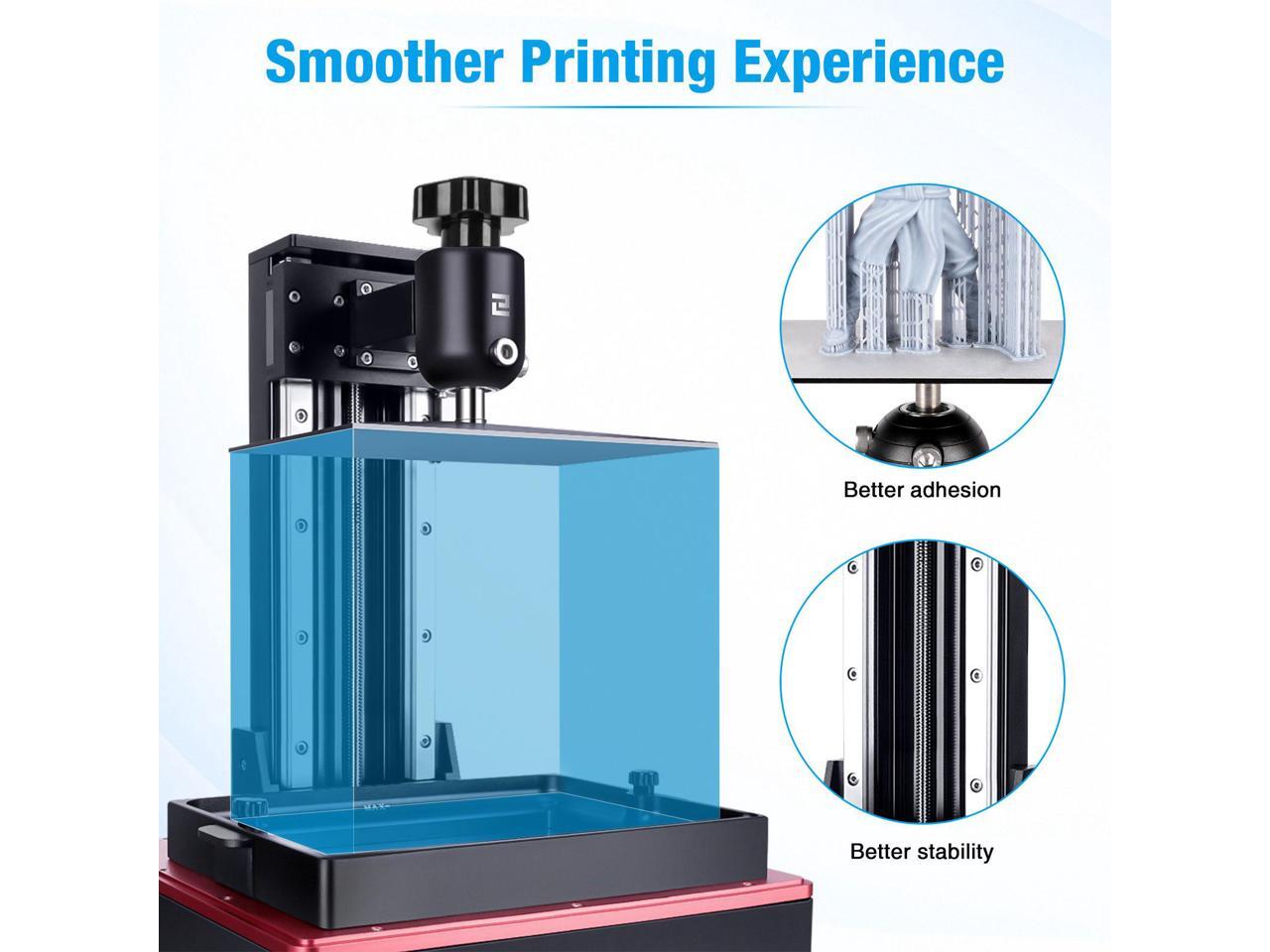- Solid Print Quality: Z-axis Double linear railway brings super stable movement and 0.00125mm accuracy; 54 Matrix LED offer more powerful and more uniform UV light; All-new design thinner, scratch-resistant and durable PFA release film greatly improves the success rate of printing