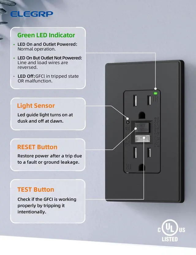 ELEGRP GFCI Outlets: Safe Power by Day, Gentle Light by Night