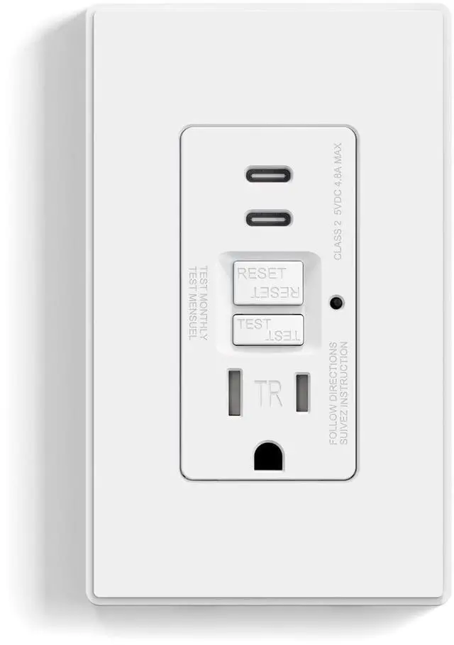 Combining GFCI protection with dual USB ports, this outlet delivers a total of 24W, making it the perfect solution for kitchens, bathrooms, and tight spaces. With one AC outlet and two USB ports, our "Less is More" design reduces clutter and interference from multiple connections.