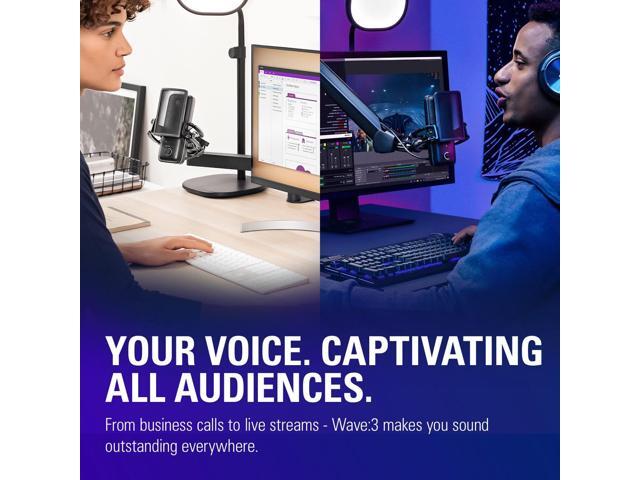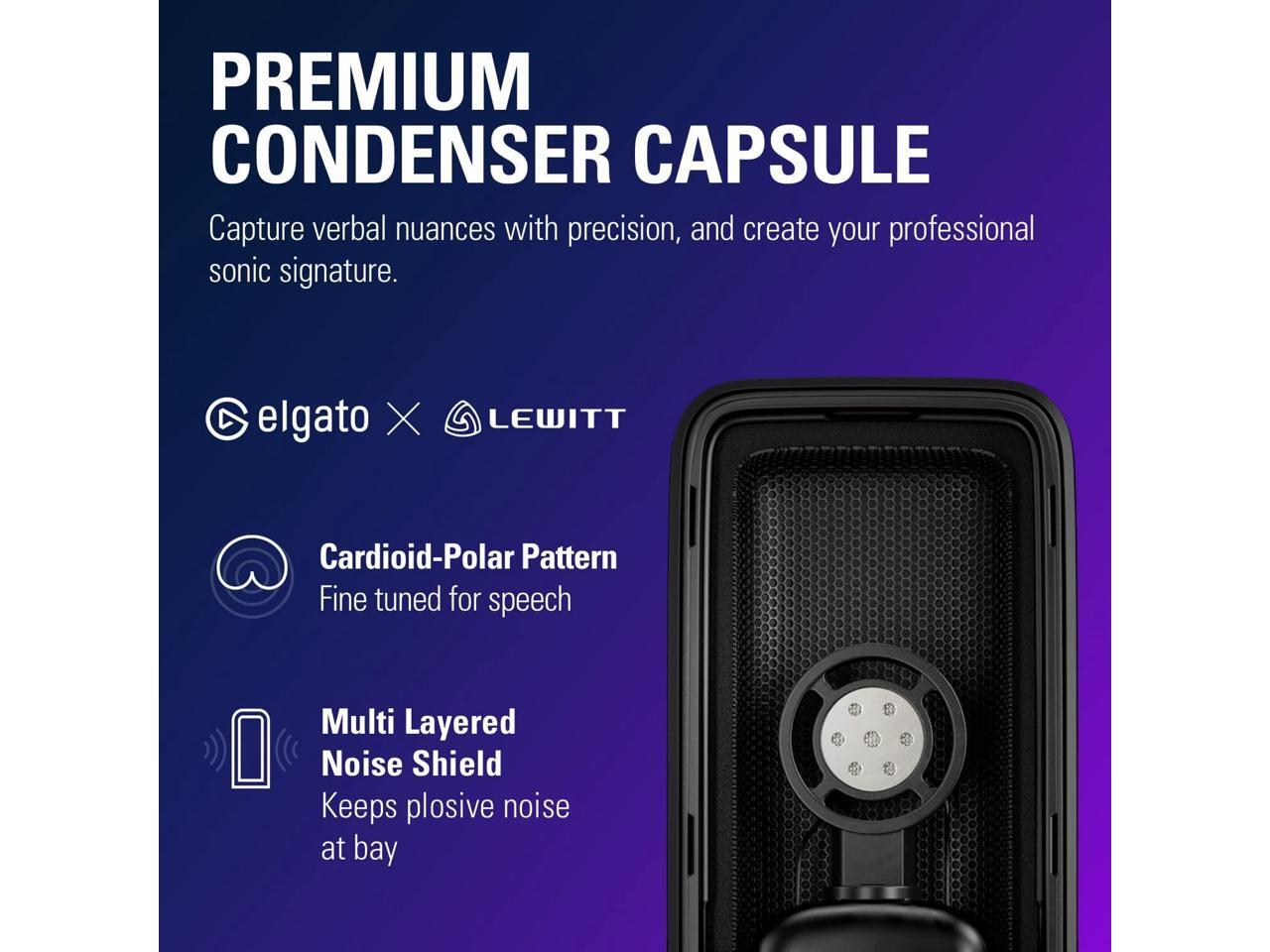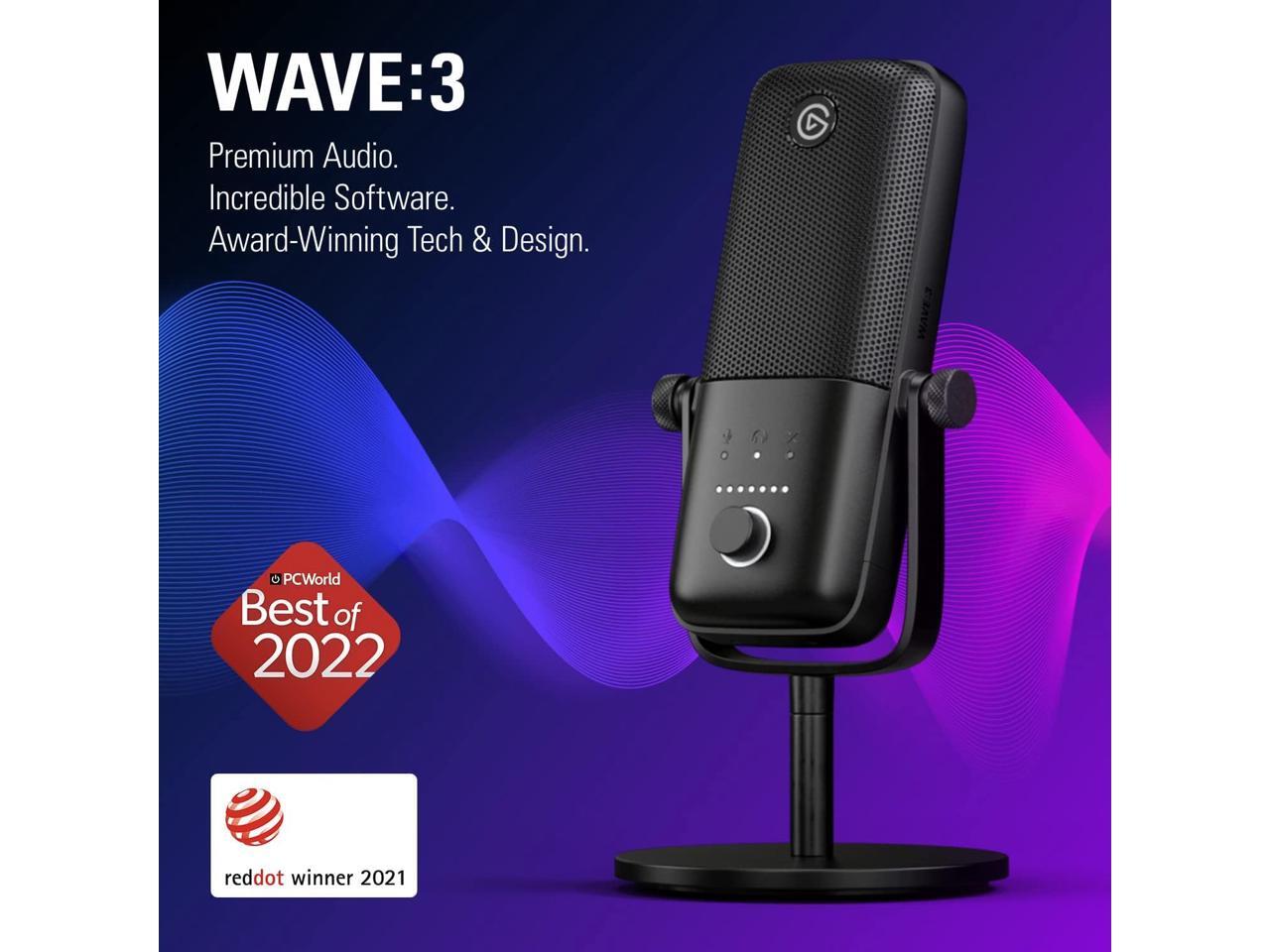 Elgato Wave:3 - Premium Studio Quality USB Condenser Microphone for Streaming, Podcast, Gaming and Home Office, Free Mixer Software, Sound Effect Plugins, Anti-Distortion, Plug ’n Play, for Mac, PC