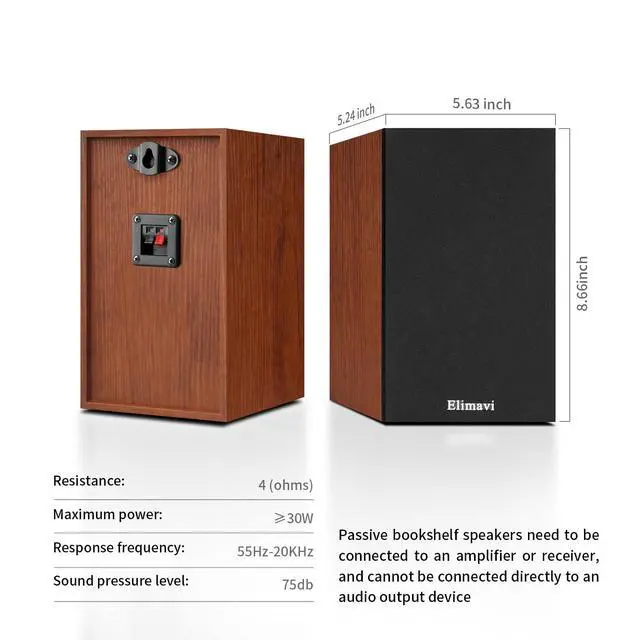 Elevate Every Note with Elimavi 2-Way Passive Bookshelf Speakers Your Go-To Audio Solution for Home, Office, and Theater