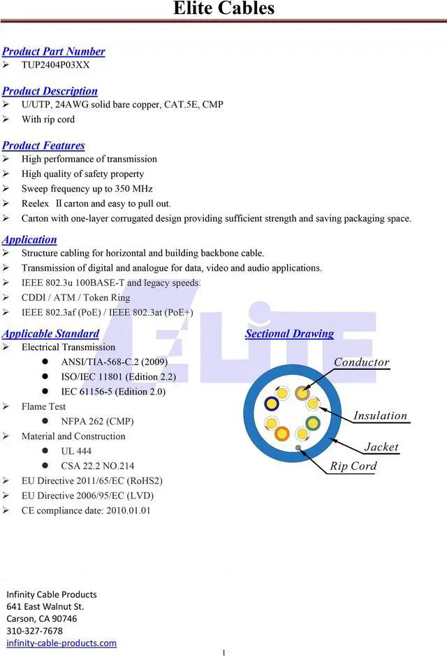 Electronic Performance: 3 - 5 DB extra margin over EIA/ TIA-568.2-D Standards.