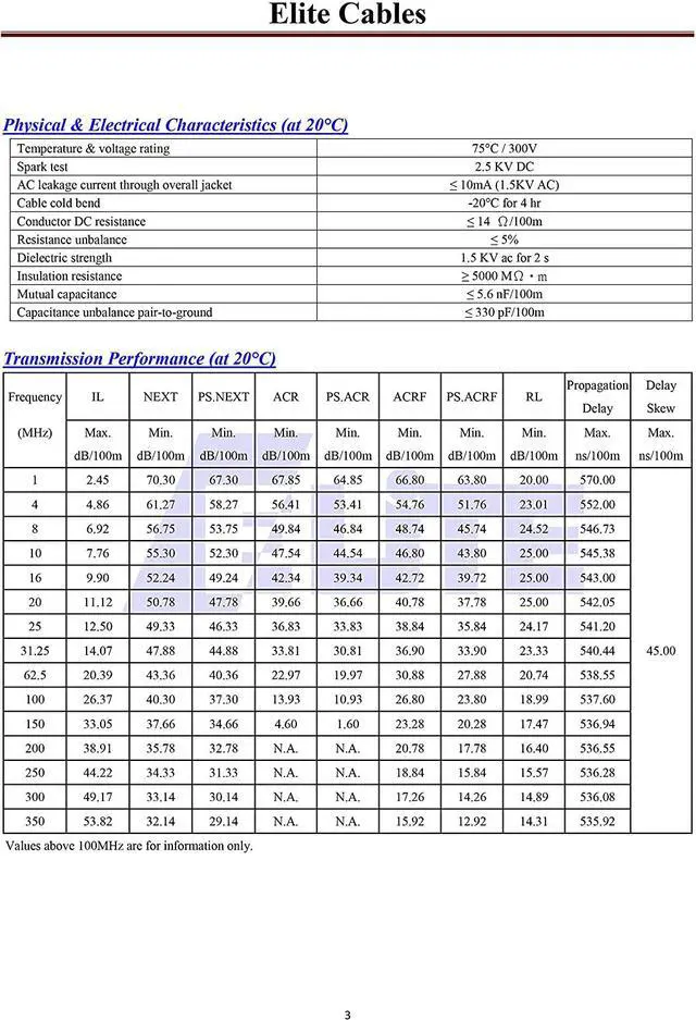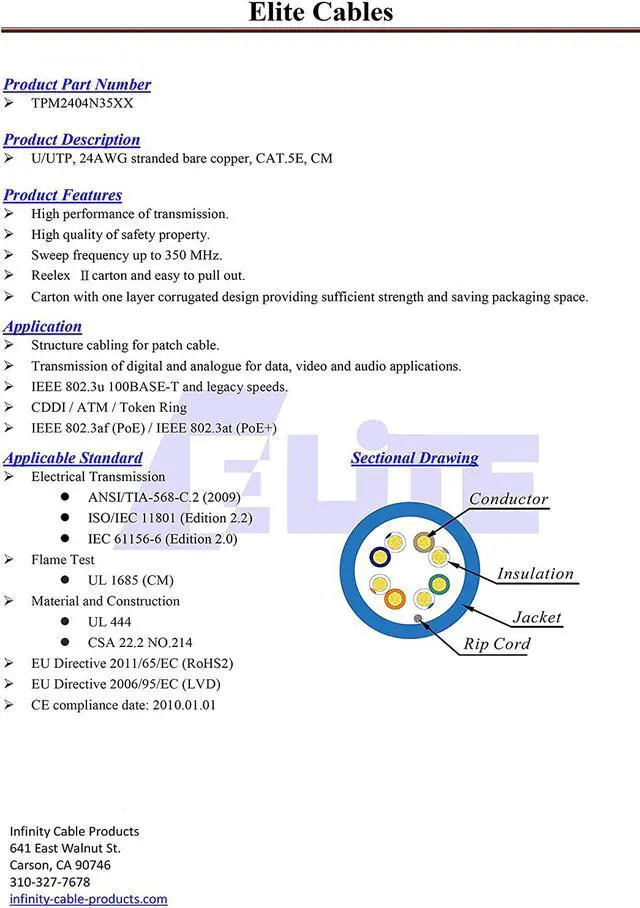 * Electronic Performance: 3 - 5 DB extra margin over EIA/TIA Standard