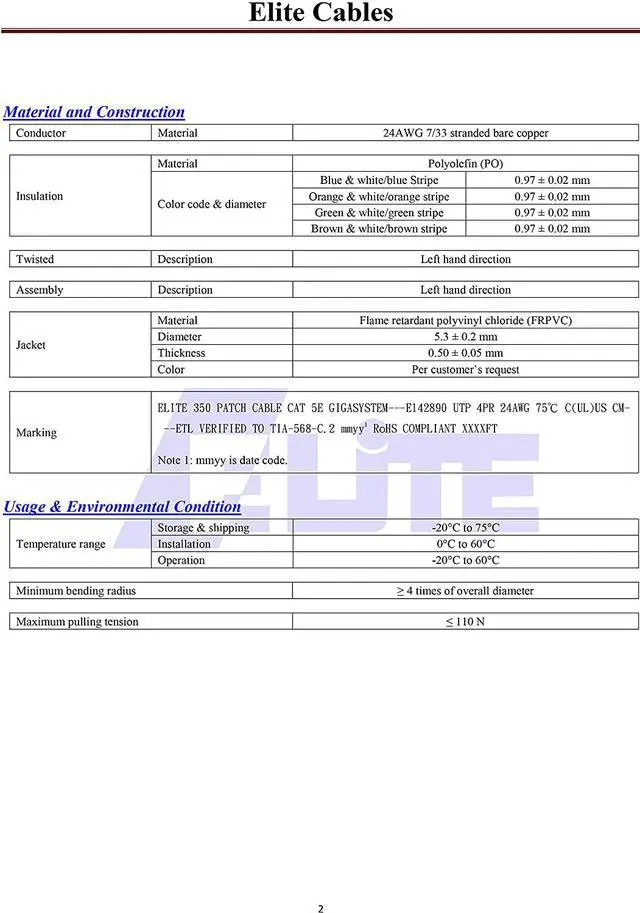 * Electronic Performance: 3 - 5 DB extra margin over EIA/TIA Standard