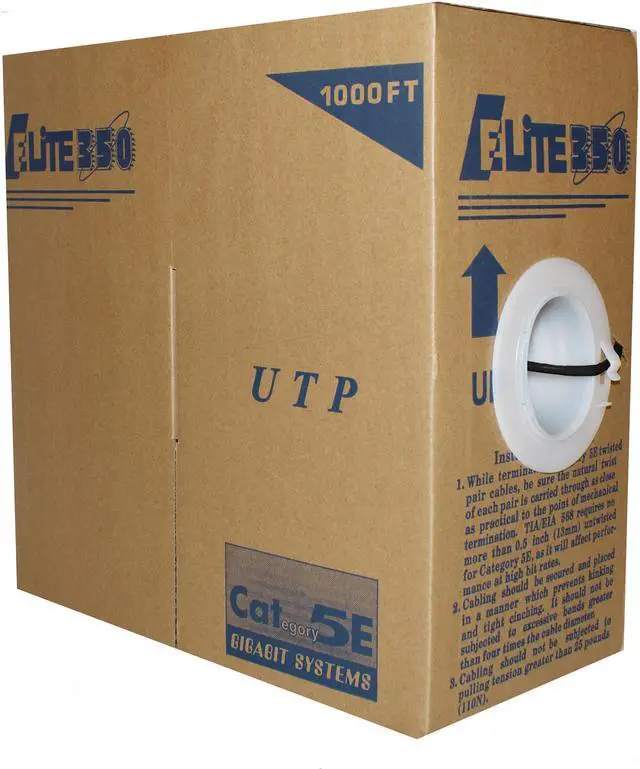 This Cat5e cable is a 4 twisted pair made with 24AWG bare copper wires. This cable comes well packaged in a sturdy easy to pull box.