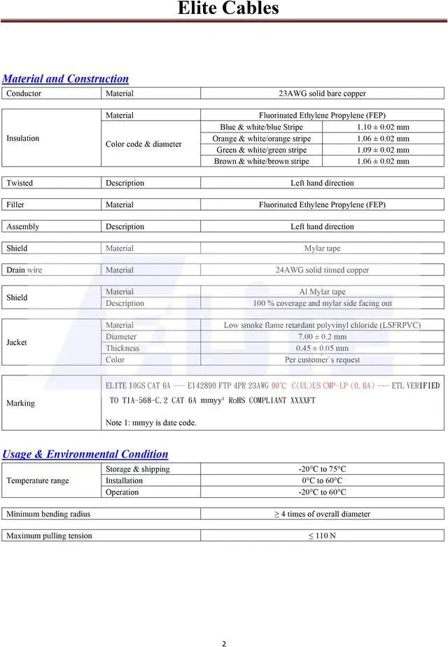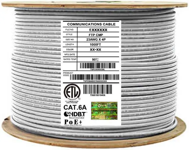 • Elite Cat6a Shielded Plenum is 1000ft, 23AWG, Solid Bare Copper, 4 Unshielded Twisted Pairs with an overall foil shield around all 4 pairs.