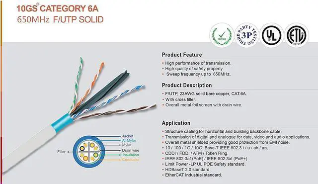 • Supports 10Gb (Gigabit) Ethernet and up to 650MHz at 328 Feet. Protect your network in areas with EMI (electromagnetic interference) with shielded cable. Power devices such as: PoE (Power Over Ethernet), computers, routers, IP Cameras, switches, keystone jacks, RJ45's, modems, Xbox, PlayStation, Apple TV, ethernet adapters, Fax Machines, Smart TV's, Mesh networks, access points, cctv and much more!