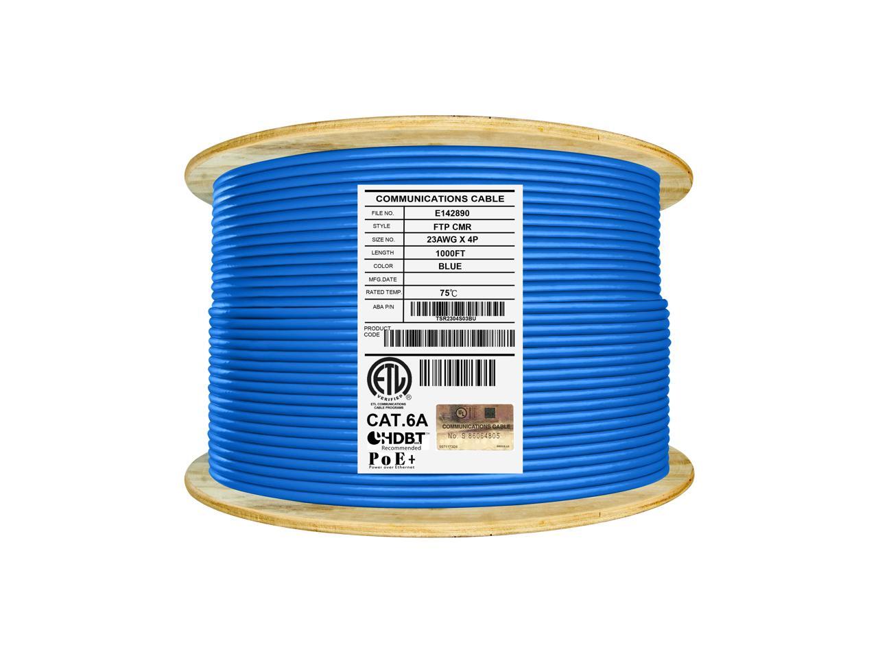 Elite Cat6a Shielded Riser (CMR), 1000ft, 650MHz, 23AWG, F/UTP, Solid Pure Copper, Rated 10G, Bulk Ethernet Cable Reel, Blue