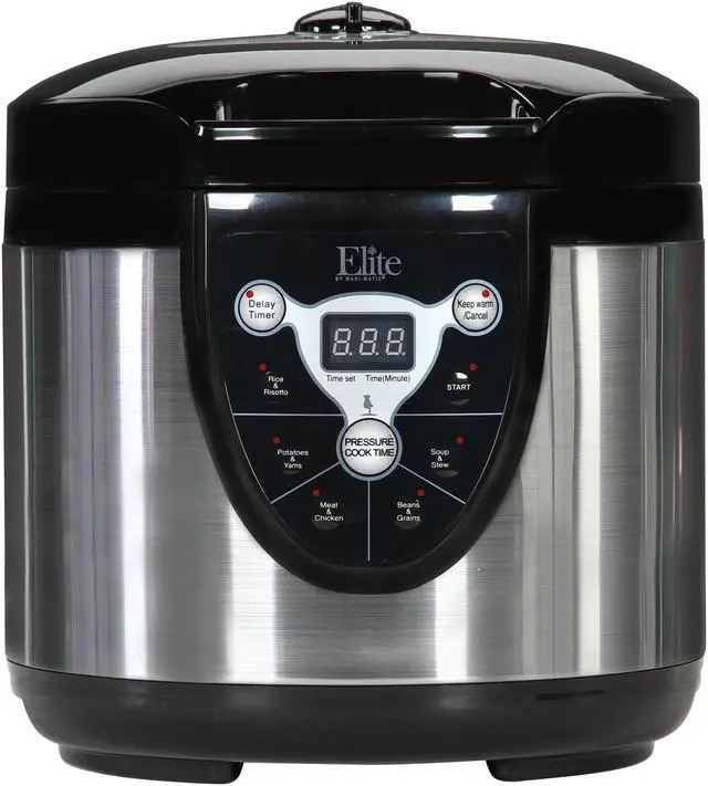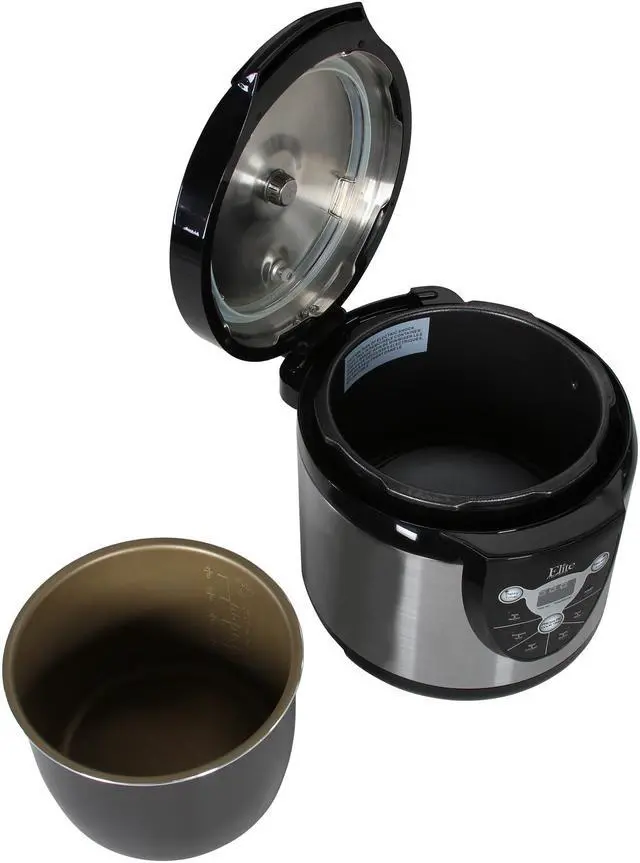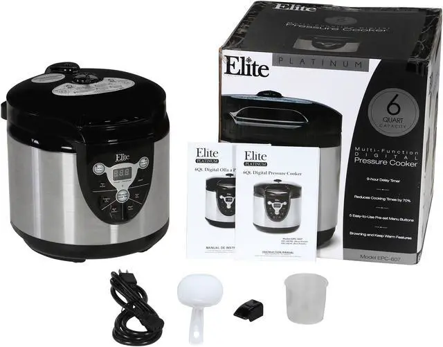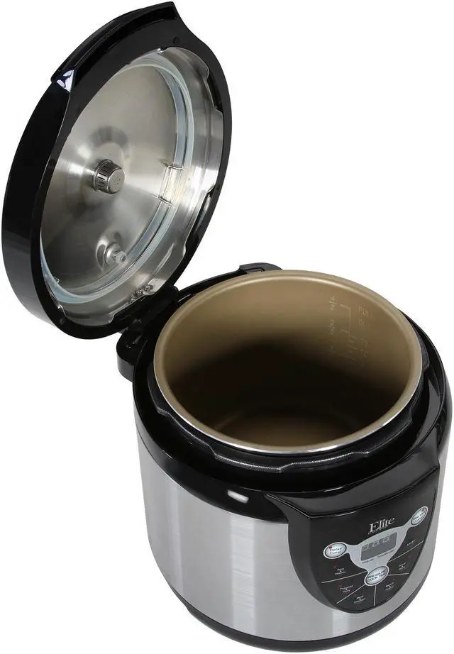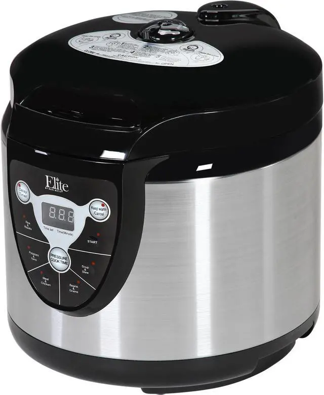 Enjoy nutritious, fast and flavorful cooking with the Elite 6-Quart Digital Electronic Pressure Cooker. The unique process of pressure cooking reduces cooking time while retaining the flavor of your foods. Up to six multi-function settings allow you to cook anything as you wish. An array of user-friendly features – 9-hour delay timer, indicator beep, and touchpad digital control with LED display etc., – makes cooking easier than ever.